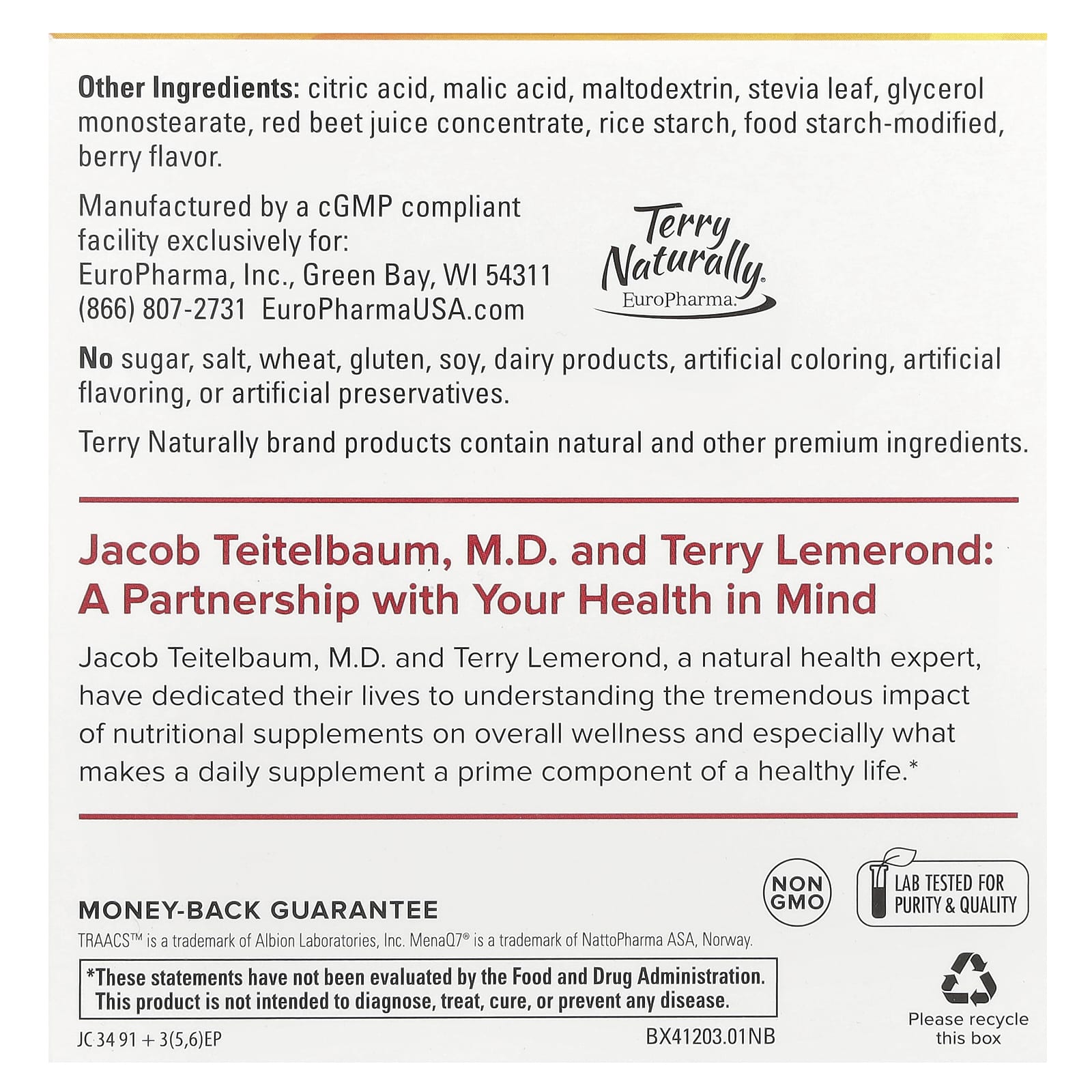 Джейкоб Тейтельбаум, доктор медицины, и Терри Лемеронд, эксперт по естественному здоровью, посвятили свою жизнь пониманию огромного влияния пищевых добавок на общее самочувствие, и особенно того, что делает ежедневный прием добавок основным компонентом здорового образа жизни.