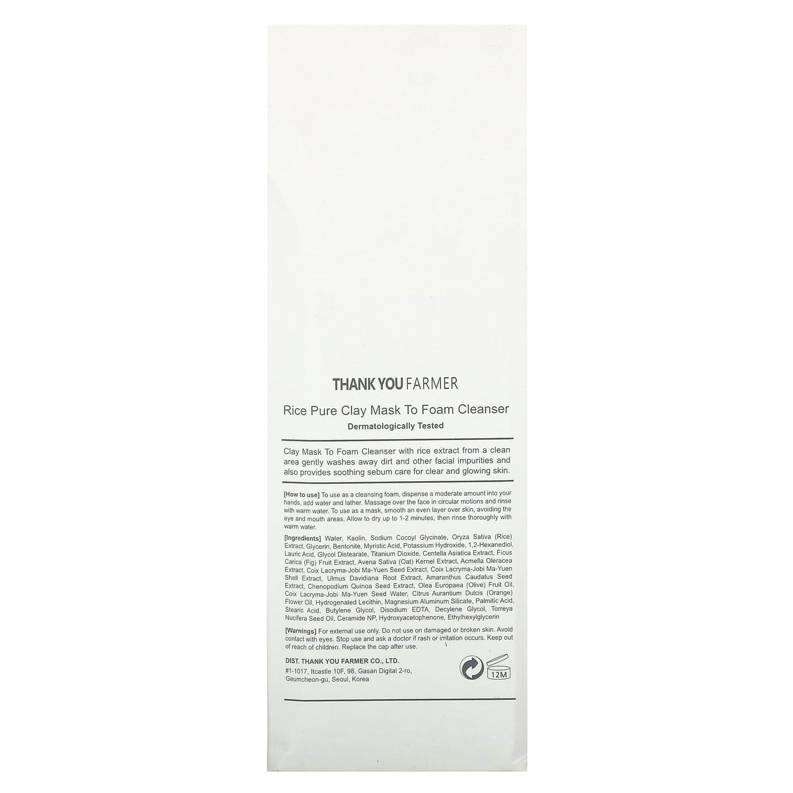 Вода, каолин, кокоил глицинат натрия, экстракт риса (Oryza sativa), глицерин, бентонит, миристиновая кислота, гидроксид калия, 1,2-гександиол, лауриновая кислота, гликоль дистеарат, диоксид титана, экстракт готу колы (Centella asiatica), экстракт плодов инжира (Ficus carica), экстракт ядер овса (Avena sativa), экстракт акмеллы огородной (Acmella oleracea), экстракт семян бусенника обыкновенного (Coix lacryma), экстракт скорлупы бусенника (Coix lacryma-jobi ma-yuen), экстракт корня вяза Давида (Ulmus davidiana), экстракт семян амаранта хвостатого (Amaranthus caudatus), экстракт киноа (Chenopodium quinoa), оливковое масло (Olea europaea), вода из семян бусенника (Coix lacryma-jobi ma-yuen), масло из цветков апельсина (Citrus aurantium dulcis), гидрогенизированный лецитин, алюмосиликат магния, пальмитиновая кислота, стеариновая кислота, бутиленгликоль, двунатриевая ЭДТК, дециленгликоль, масло из семян торея (Torreya nucifera), керамид NP, гидроксиацетофенон, этилгексилглицерин.