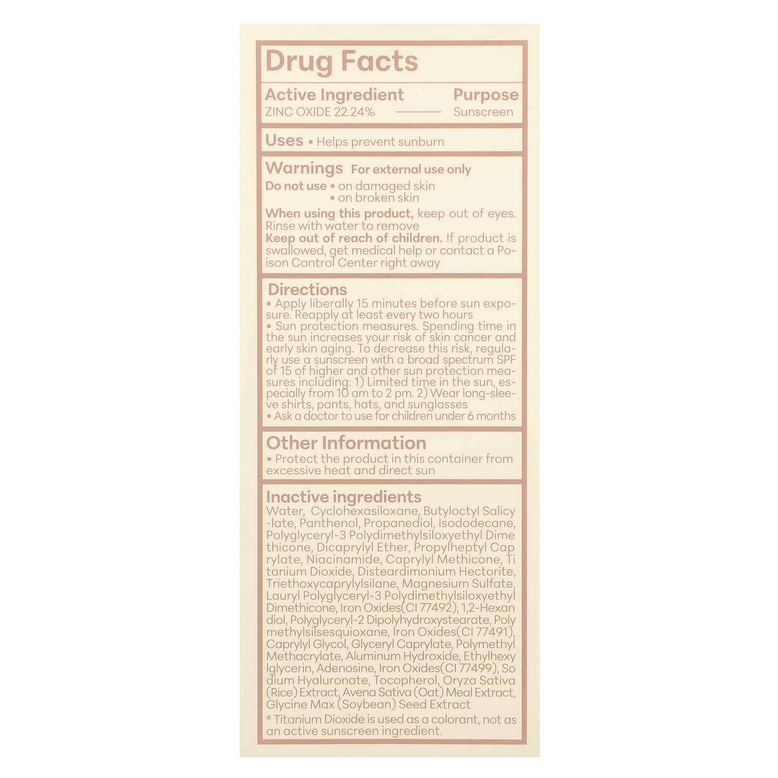 | Оксид цинка 22,24% | Солнцезащитные средства |