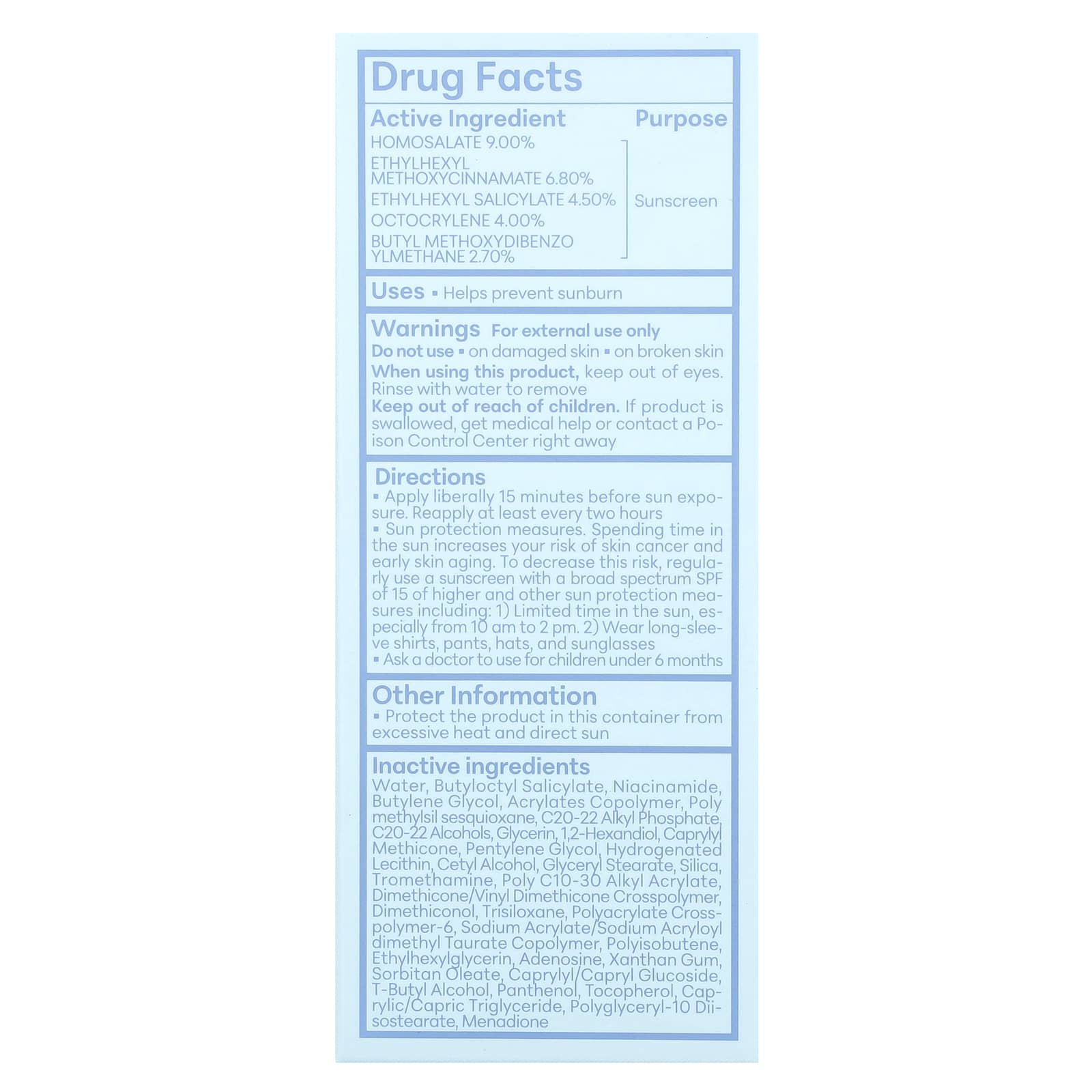 | Неактивные ингредиенты: Вода, бутилоктилсалицилат, ниацинамид, бутиленгликоль, сополимер акрилатов, полиметилсил сесквиоксан, C20-22-алкилфосфат, C20-22-спирты, глицерин, 1,2-гександиол, каприлилметикон, пентиленгликоль, гидрогенизированный стеилгликоль, цетиловый спирт. диоксид кремния, трометамин, поли-c10-30 алкилакрилат, диметикон / винилдиметикон кроссполимер, диметиконол, трисилоксан, кросс-полимер-6 полиакрилата, сополимер акрилата натрия / акрилоил диметилтаурата натрия, полиизобутен, этилгексилглицерин, аденозиноденозин / каприл глюкозид, трет-бутиловый спирт, пантенол, токоферол, каприловый / каприновый триглицерид, полиглицерил-10 диизостеарат, менадион. | |