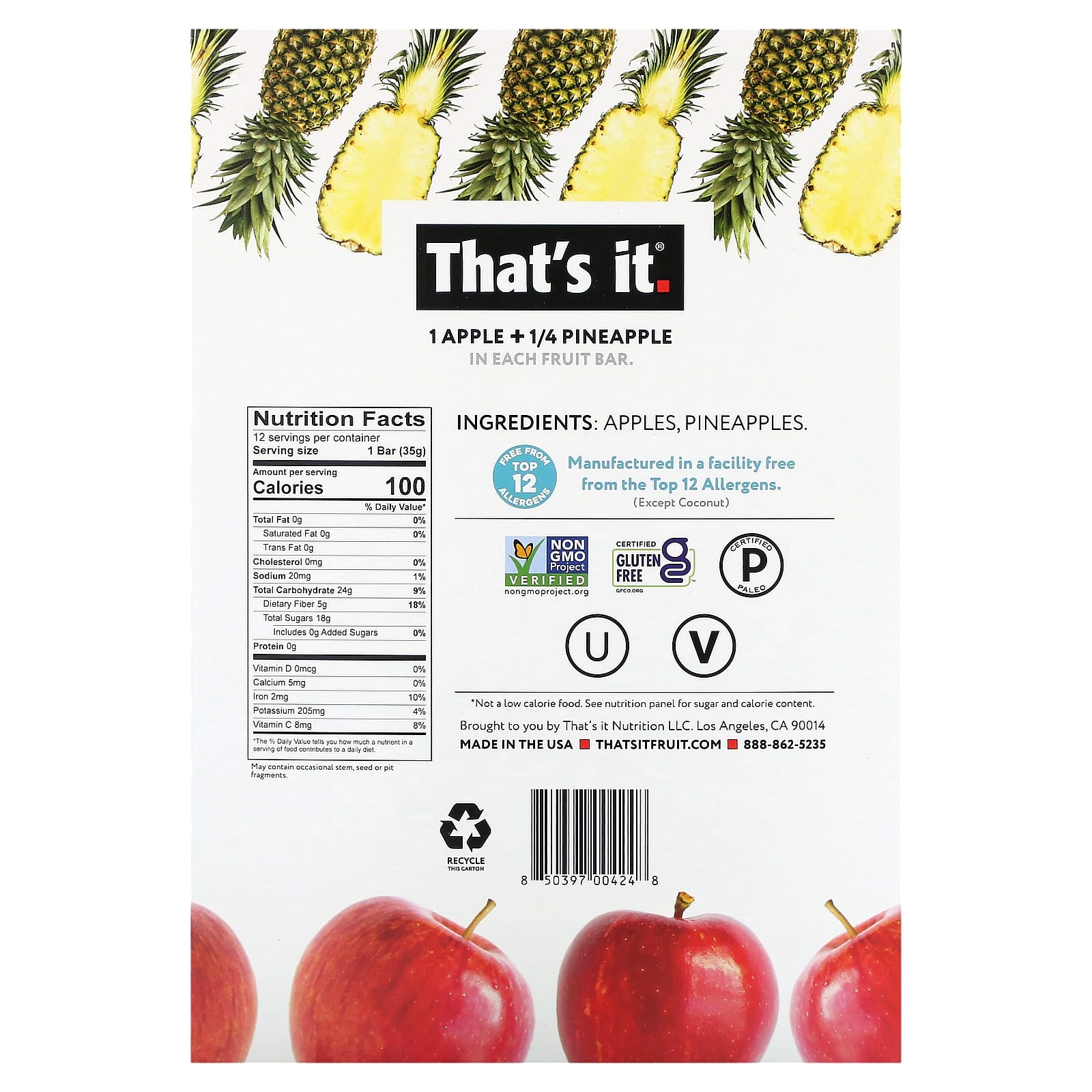That's It, фруктовый батончик, яблоко и ананас, 12 батончиков по 35 г (1,2 унции)