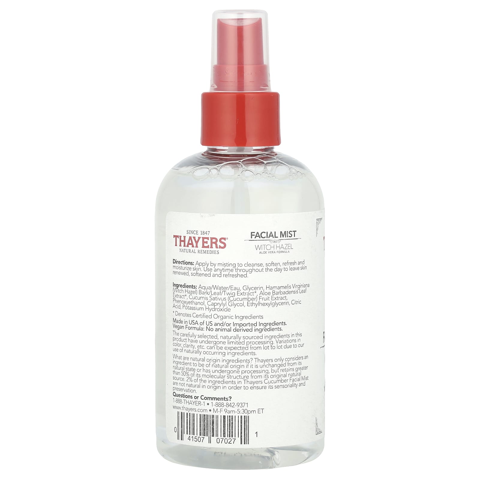 Какие ингредиенты натурального происхождения? Компания Thayers считает ингредиент натуральным только в том случае, если он не изменился по сравнению с его естественным состоянием или прошел обработку, но сохранил более 50% своей молекулярной структуры из исходного природного источника. 2% ингредиентов в спрее для лица с огурцом (Thayers) имеют ненатуральное происхождение, чтобы обеспечить его чувственность и сохранность.