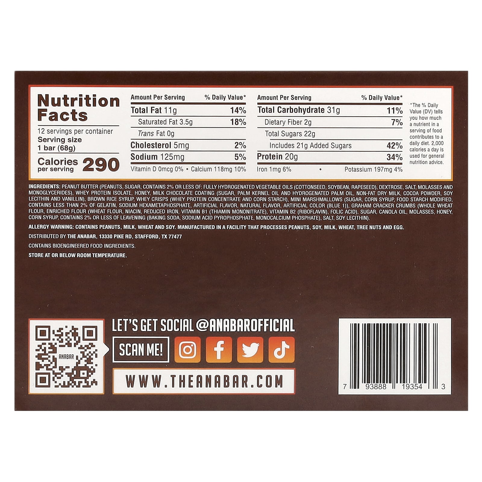 Арахисовая паста (арахис, сахара, содержит не более 2% полностью гидрогенизированных растительных масел, соя, рапса), декстроза, сидел, моноглицериды патоки), мед, изолят сывороточного протеина, глазурь из молочного шоколада (сахар, пальмоядровое масло, гидрогенизированное пальмовое ядро, пальмовое масло, обезжиренное сухое молоко, какао, соевый лецитин, соль, искусственных ароматизаторов), чипсы из сыворотки (концентрат сывороточного протеина, кукурузный крахмал), сироп из бурого риса, зефир мини (сахар, кукурузный сироп, пищевой с модифицированным крахмалом, содержит менее 2% желатина, гексаметафосфат натрия, искусственных ароматизаторов, натуральный ароматизатор, искусственный краситель (синий 1)), крошки крекера Грэма (цельнозерновая мука, обогащенная мука (пшеничная мука, ниацин, восстановленное железо, витамин B1 [мононитрат тиамина], витамин B2 [рибофлавин] фолиевая кислота), сахар. рапсовое масло, патока, кукурузный сироп с медом, содержит не более 2% разрыхлителей (пищевая сода, пирофосфат натрия, монокальций фосфат), соль, соевый лецитин)).