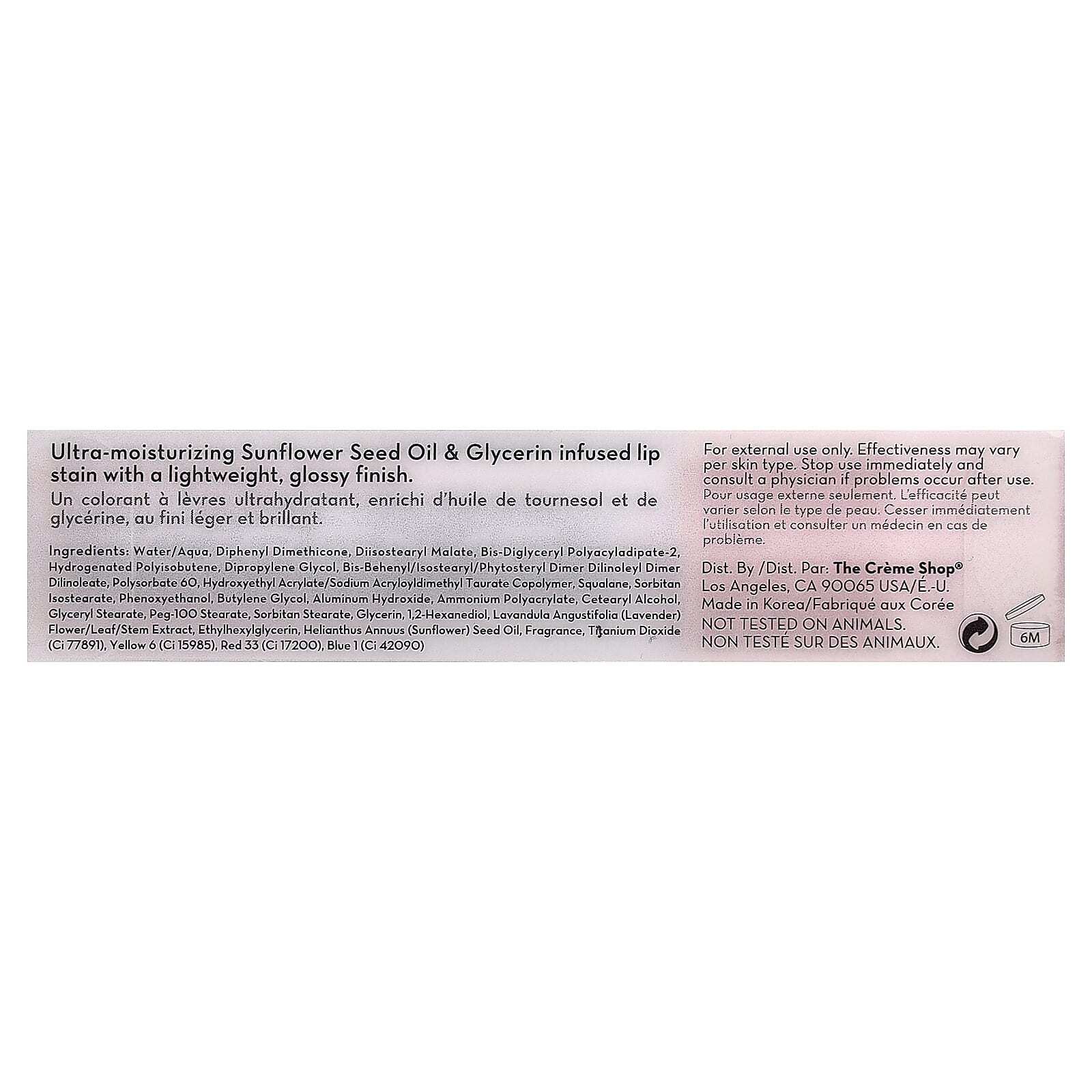 Ультраувлажняющий краситель для губ, содержащий подсолнечное масло и глицерин, с легким глянцевым финишем.