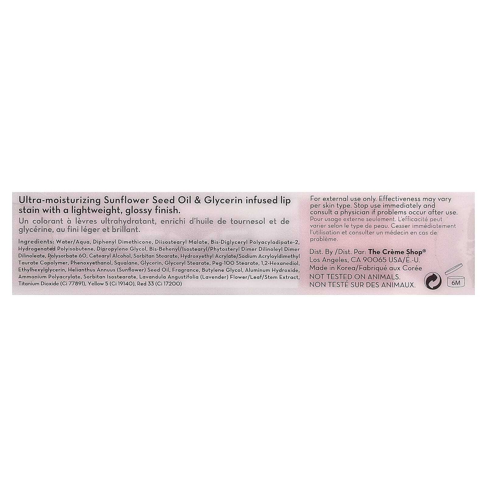 Ультраувлажняющий краситель для губ, содержащий подсолнечное масло и глицерин, с легким глянцевым финишем.