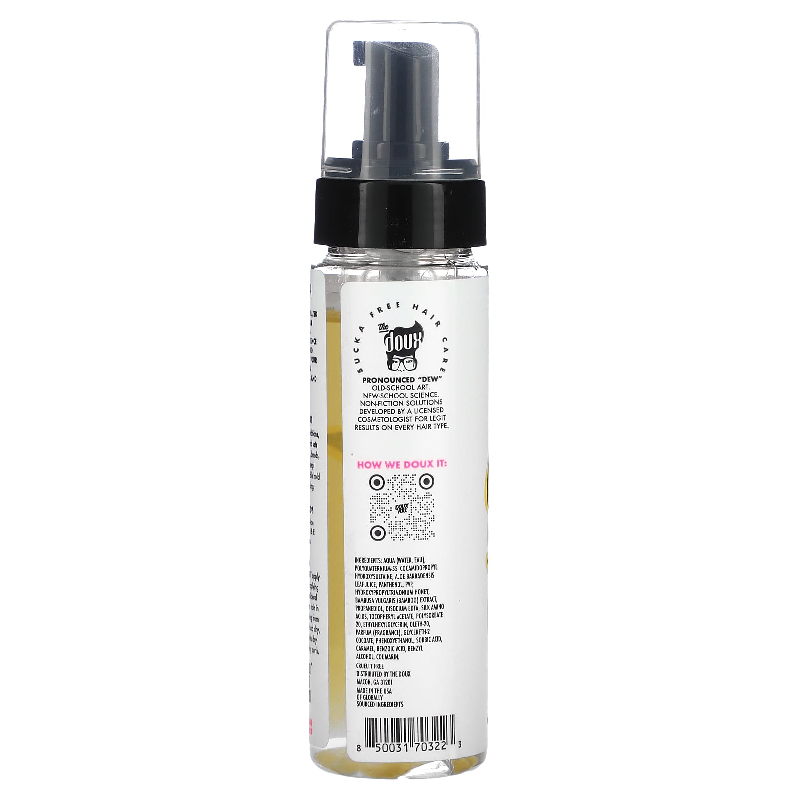 Aqua (вода, eau), поликватерниум-55, кокамидопропил гидроксисултаин, сок листьев алоэ вера (Aloe barbadensis), пантенол, ПВП, гидроксипропилтримониевый мед, экстракт бамбука (Bambusa vulgaris), пропандиол, двунатриевая ЭДТК, аминокислоты шелка, токоферилацетат, полисорбат 20, этилгексилглицерин, олет-20, парфюмерная композиция (отдушка), глицерет-2 кокоат, феноксиэтанол, сорбиновая кислота, карамель, бензойной кислоты, бензиловый спирт, кумарин.