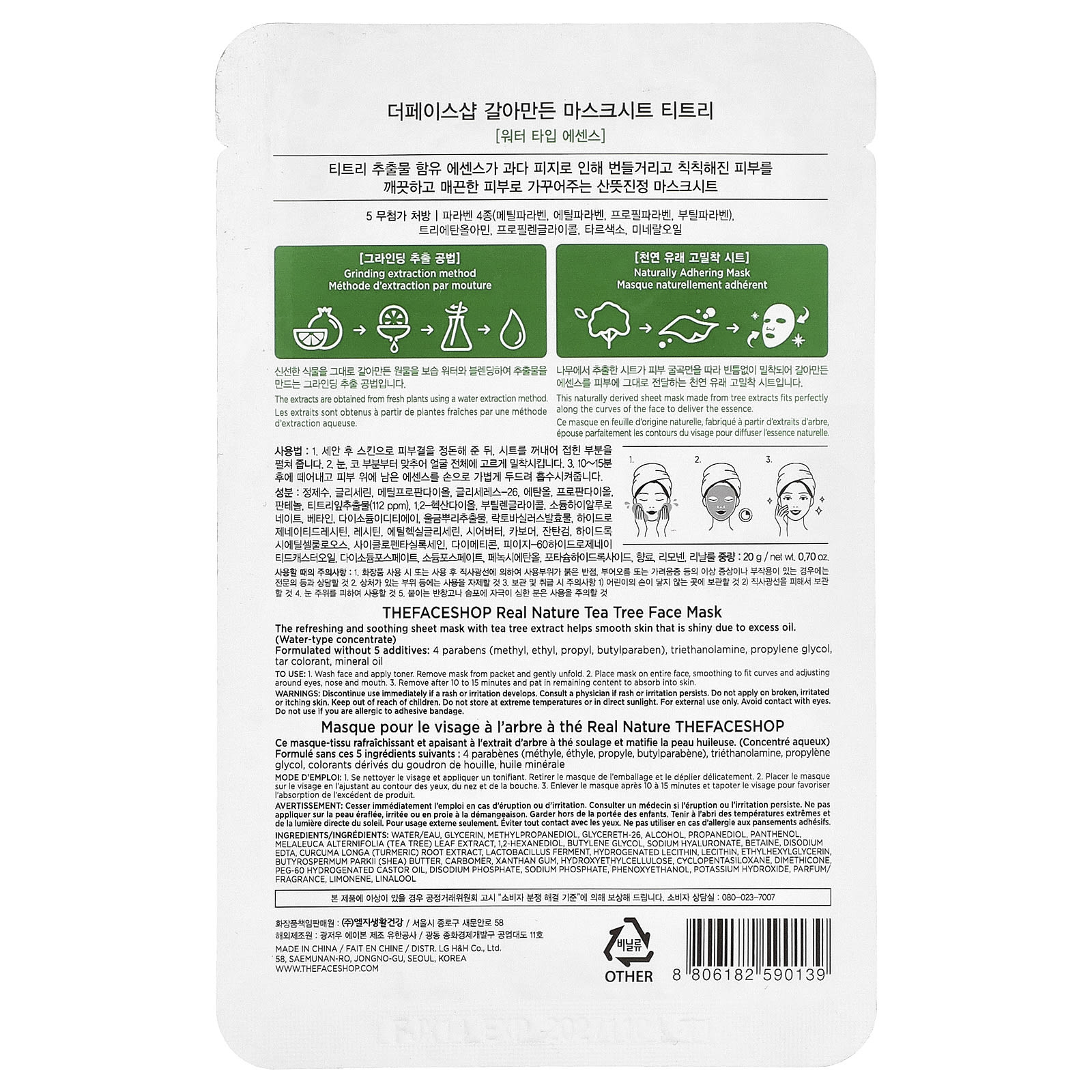 Освежающая и успокаивающая тканевая маска с экстрактом чайного дерева разглаживает кожу, которая имеет блестящий вид из-за излишков жира.