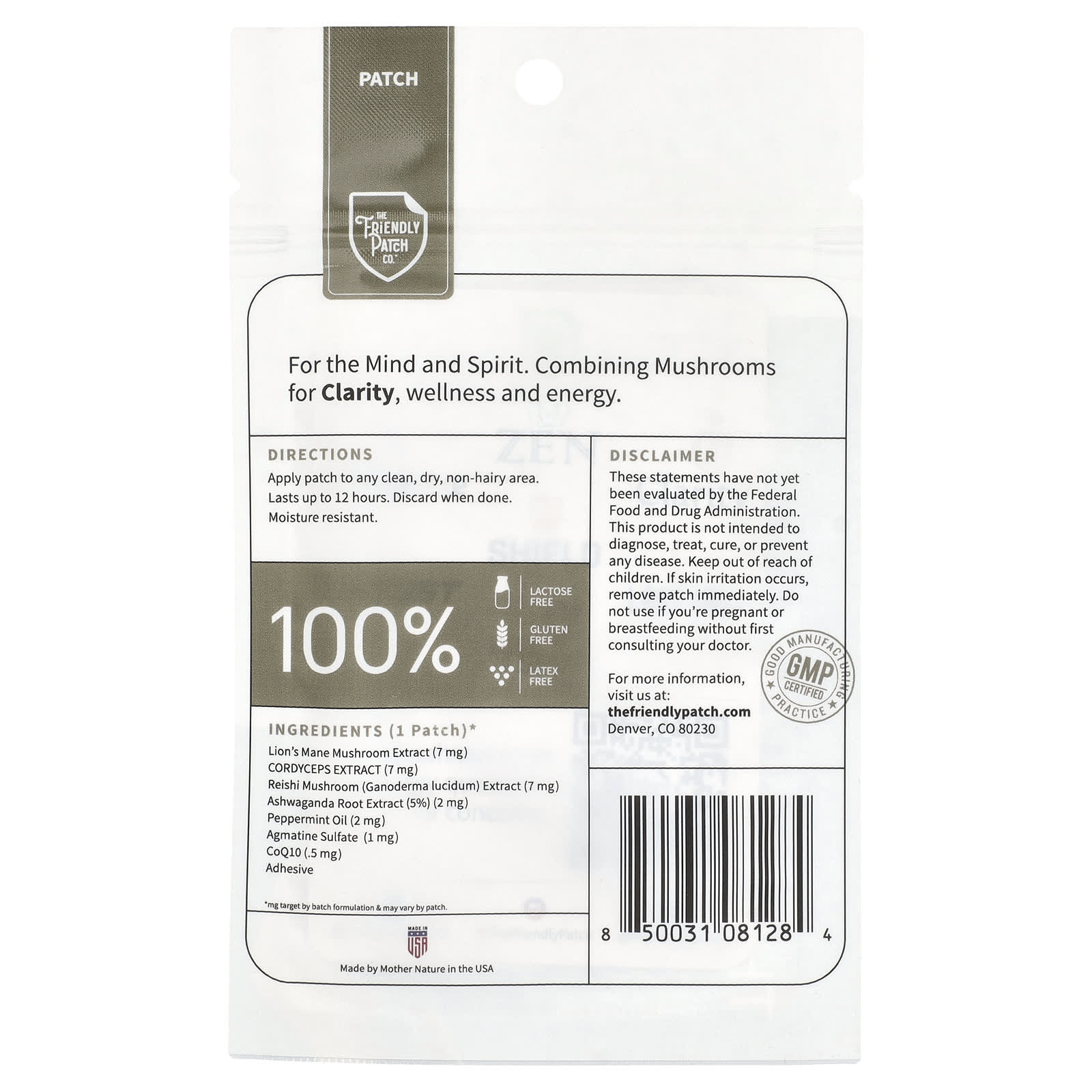 (1 патч) * - Экстракт гриба львиной (7 мг), экстракт кордицепса (7 мг), экстракт гриба рейши (Ganoderma lucidum) (7 мг), экстракт корня ашваганды (5%) (2 мг), масло перечной мяты (2 мг), агматинсульфат (1 мг), Клей с коэнзимом Q10 (0,5 мг).