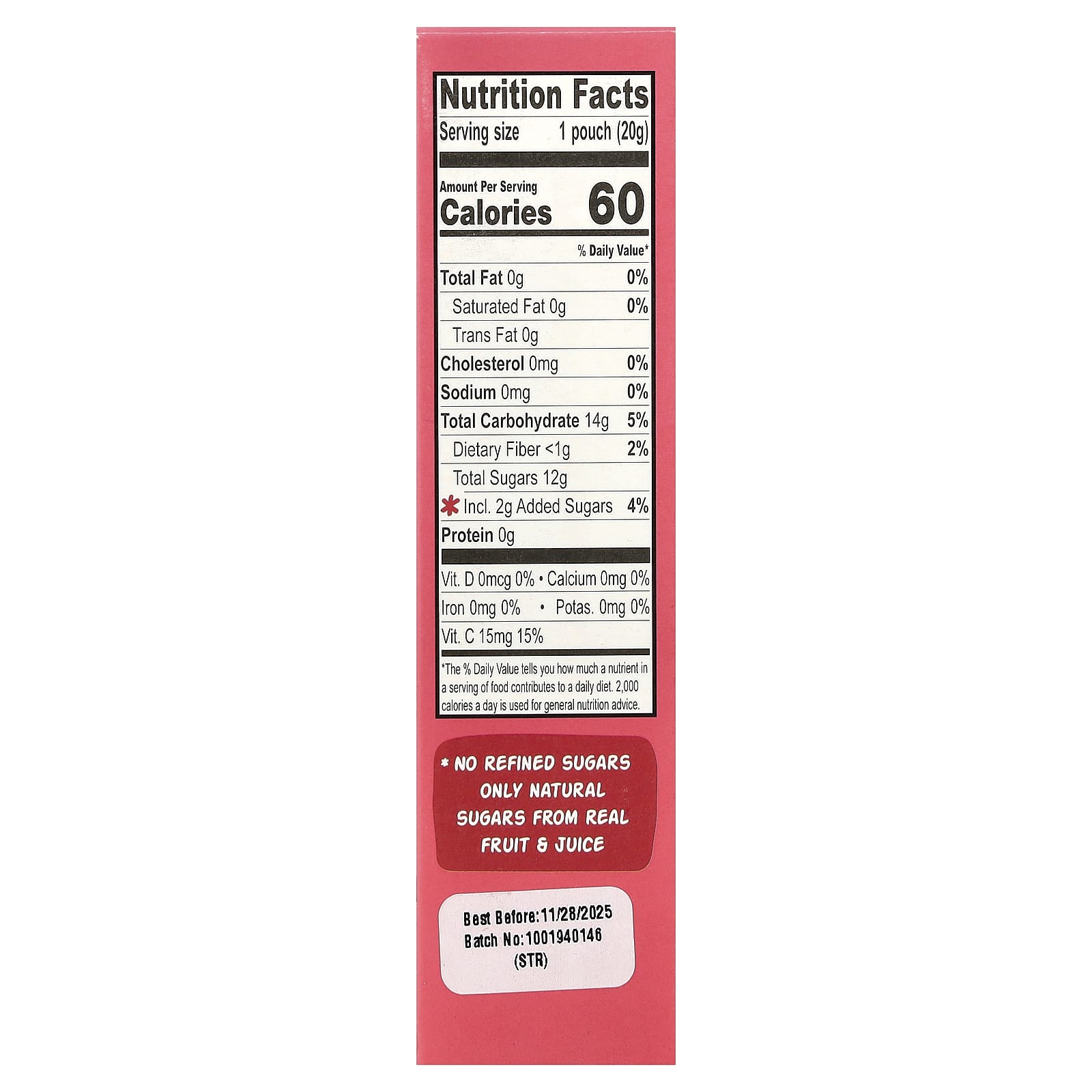 - Без рафинированного сахара — только натуральный сахар из фруктов и фруктовых соков