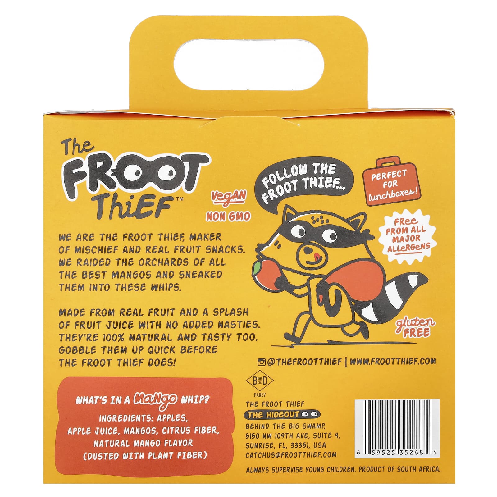Мы - The Froot Thief, создатель озорства и настоящих фруктовых закусок. Мы совершили набег на сады лучших манго и украли их этими плетками.