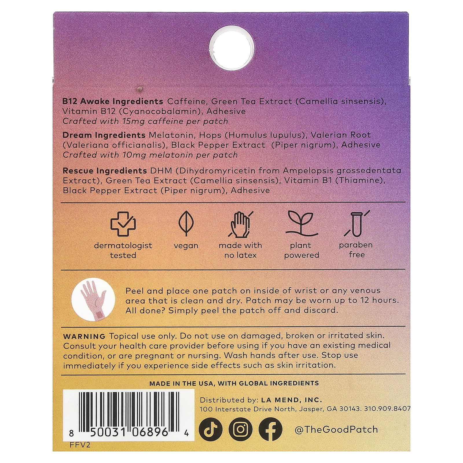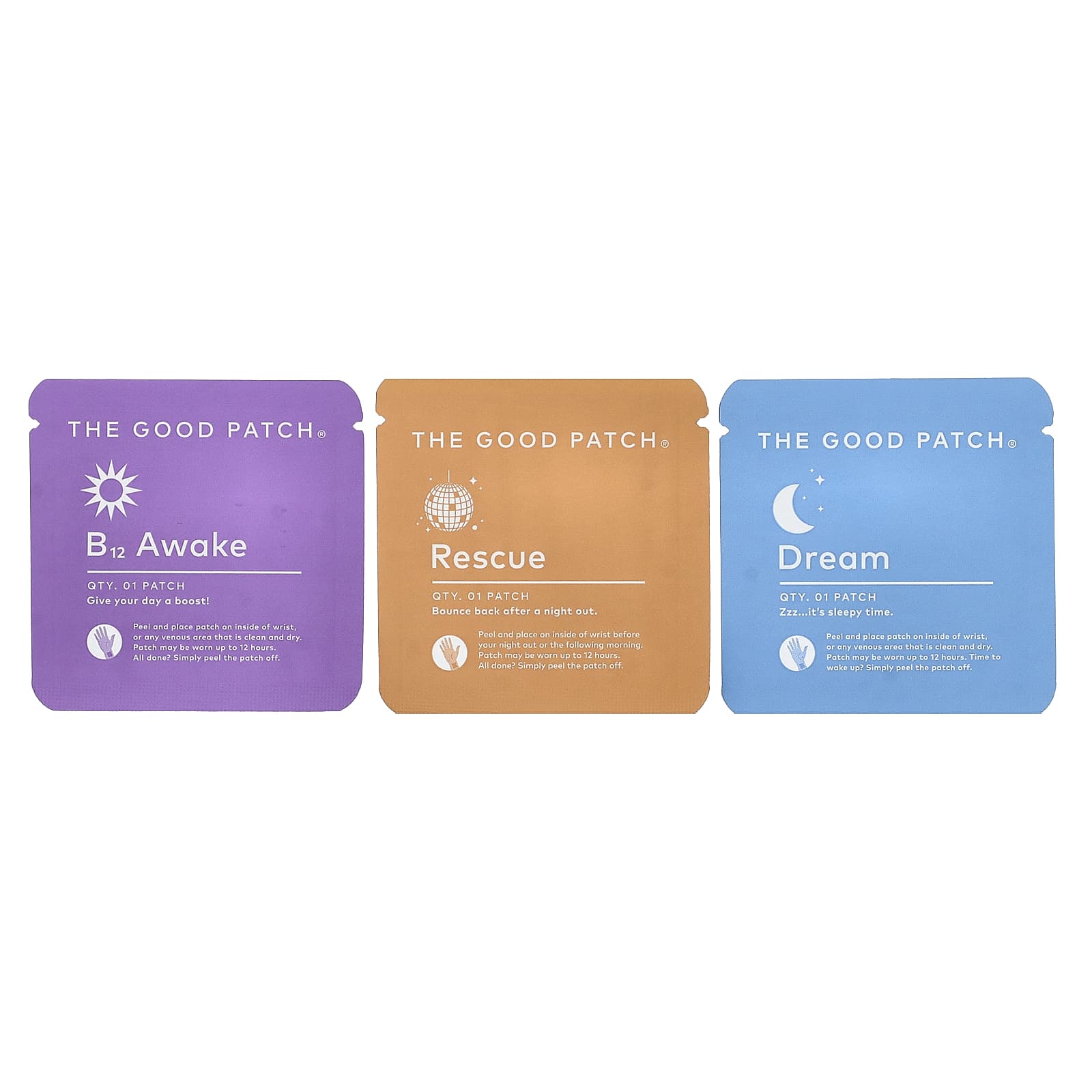 Возьмите один патч и приклейте его на внутреннюю сторону запястья или на чистую и сухую вену. Патч можно использовать до 12 часов. Готово? Просто отклейте патч и выбросьте.