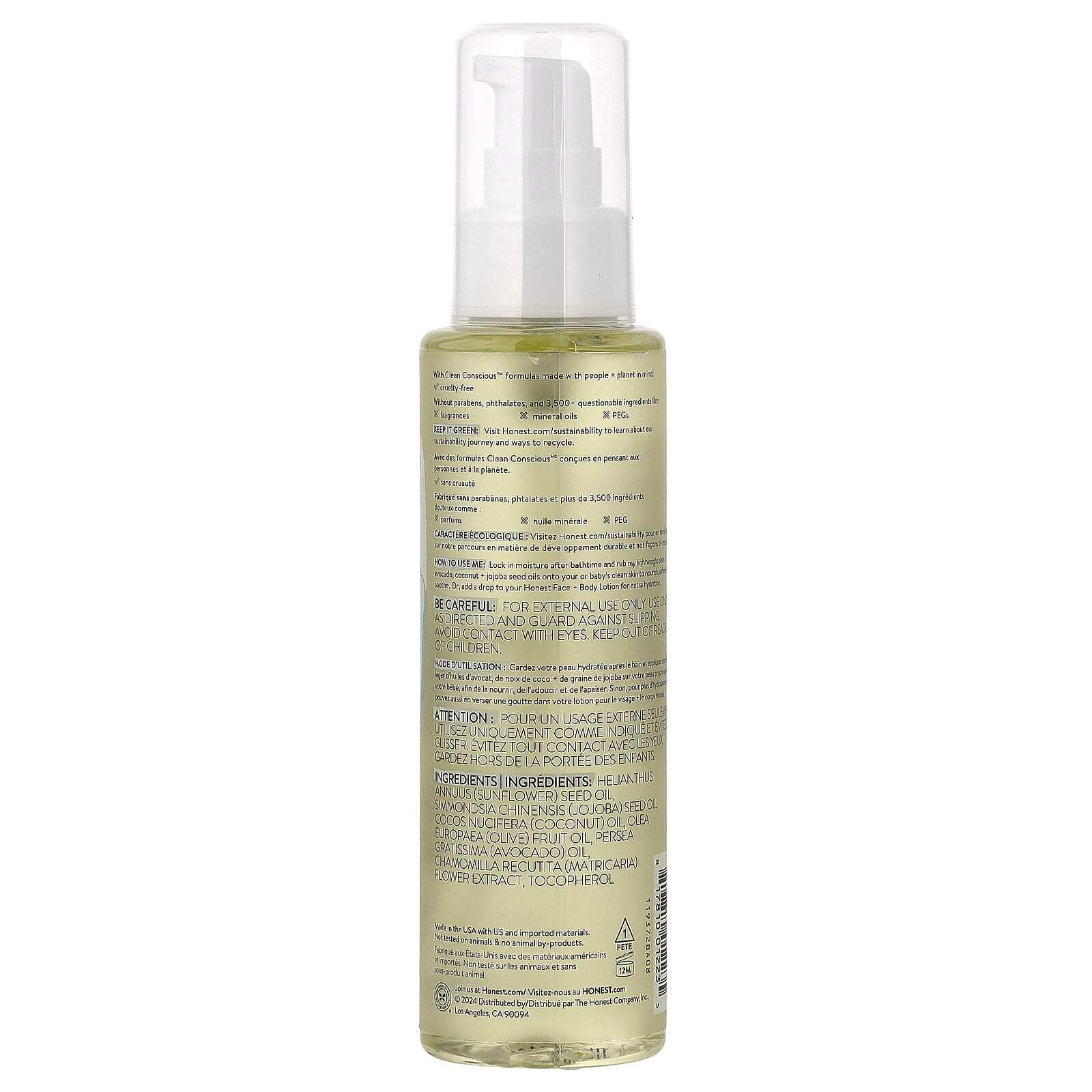 Укрепите влагу после купания и втирайте мою легкую смесь масел авокадо, кокоса и семян жожоба в чистую кожу ребенка, чтобы питать, смягчать и успокаивать ее. Кроме того, вы можете добавить каплю в лосьон для лица и тела Honest для дополнительного увлажнения.
