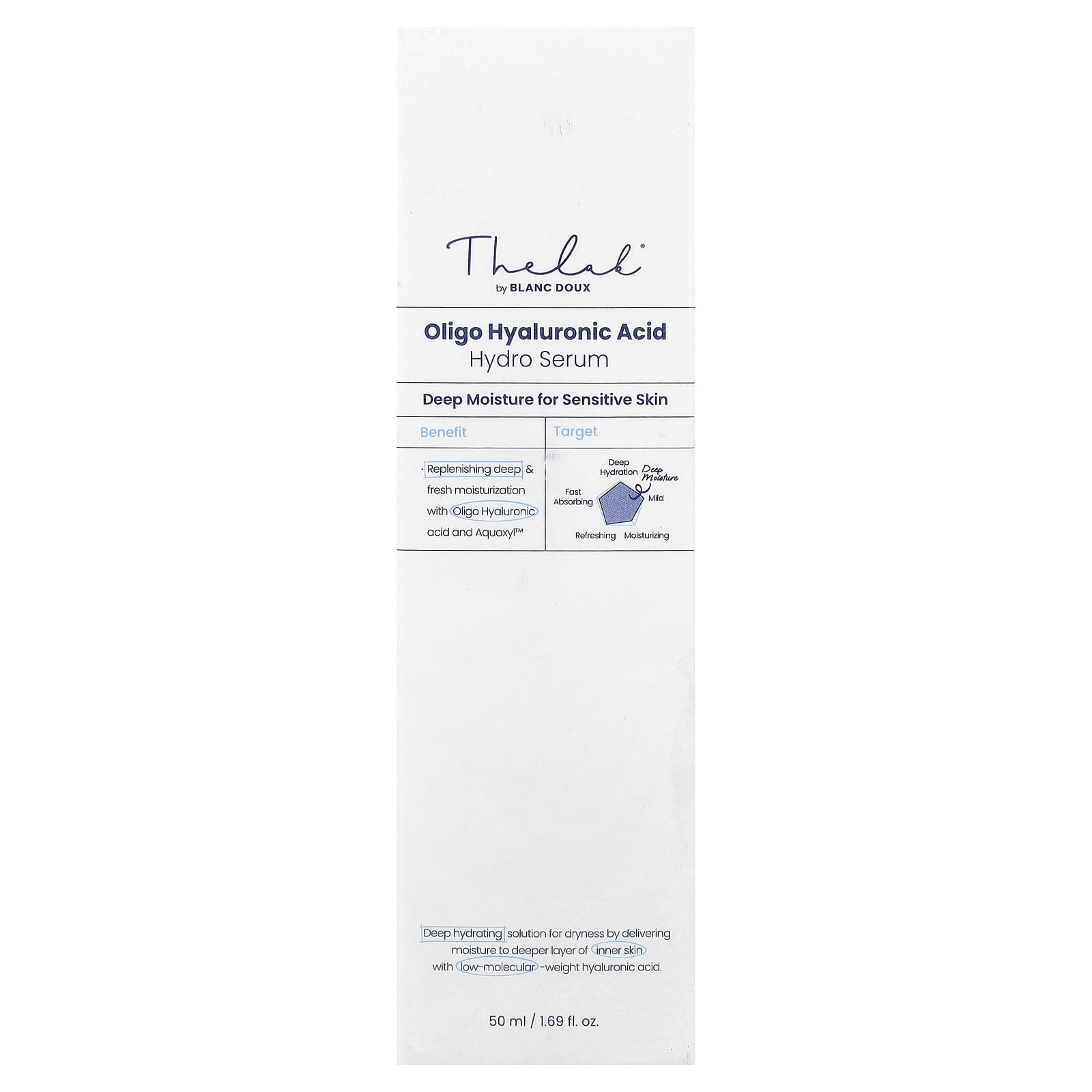 Глубоко увлажняющее средство, устраняющее сухость за счет доставки влаги в более глубокие слои кожи с помощью низкомолекулярной гиалуроновой кислоты.