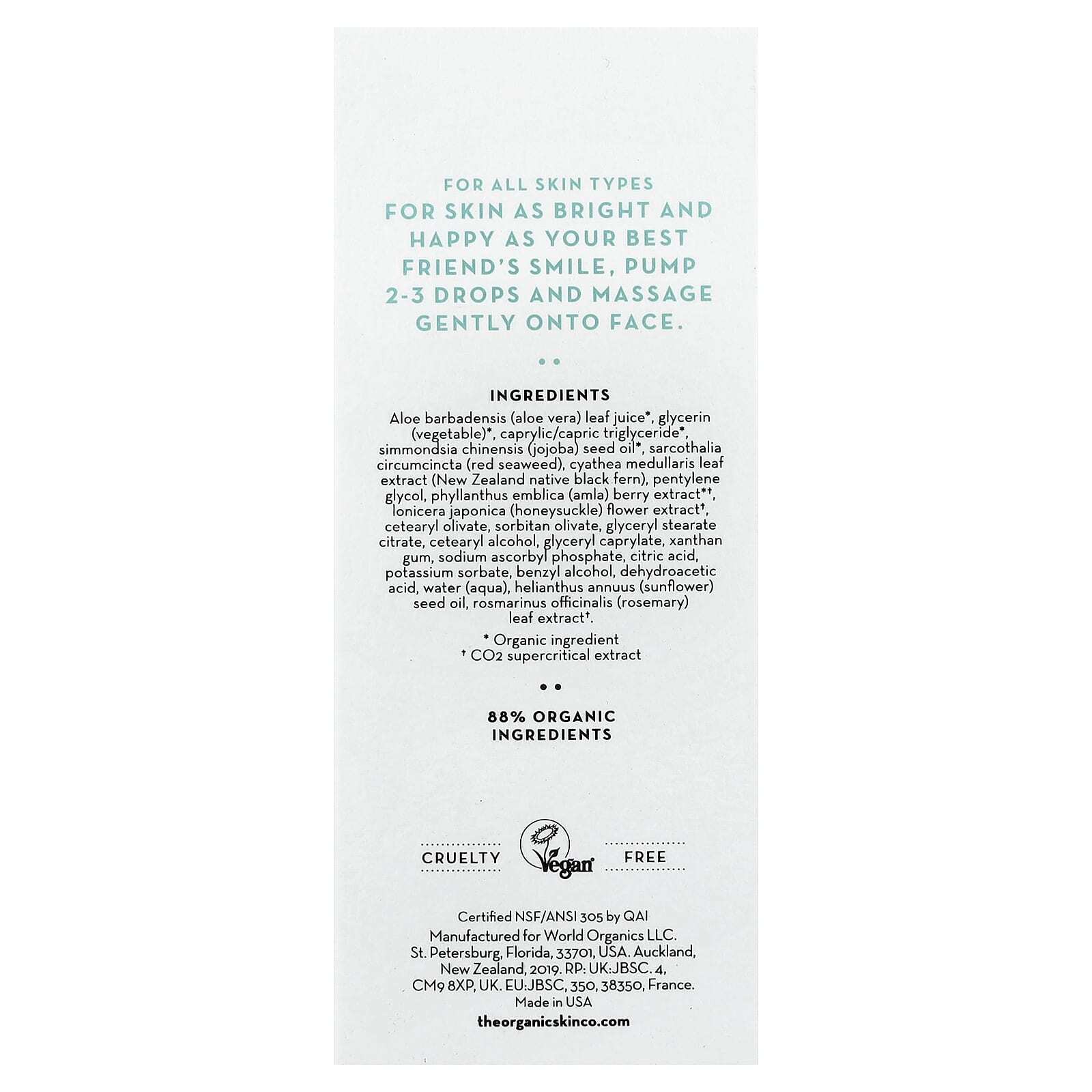 сок листьев алоэ вера (Aloe barbadensis)*, глицерин (растительный)*, каприловый/каприновый триглицерид*, масло семян жожоба (Simmondsia chinensis)*, красная водоросль (Sarcothalia digestincta), экстракт листьев черного папоротника (Cyathea medullaris) (Cyathea medullaris), пентилен гликоль, экстракт ягод амлы (Phyllanthus emblica)*†, экстракт цветков жимолости японской (Lonicera japonica)†, цетеарил оливат, сорбитан оливат, глицерил стеарат цитрат, цетеариловый спирт, глицерил каприлат, ксантановая камедь, аскорбил фосфат натрия, лимонная кислота, сорбат калия, бензиловый спирт, дегидроуксусная кислота, вода (Aqua), подсолнечное масло (Helianthus annuus), экстракт листьев розмарина (Rosmarinus officinalis)†.