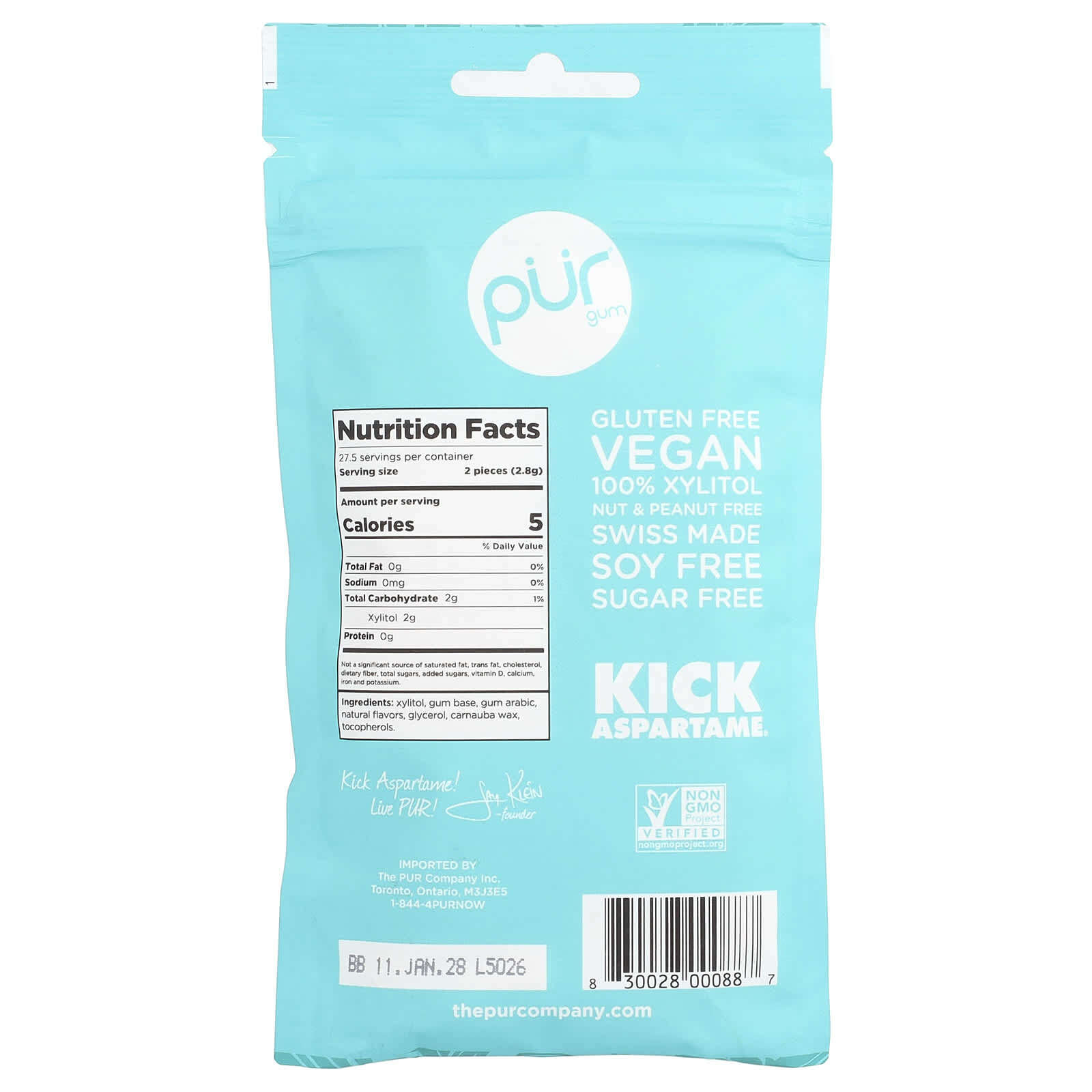 The PUR Company, Жевательная резинка, грушанка, 55 шт., 77 г (2,72 унции)