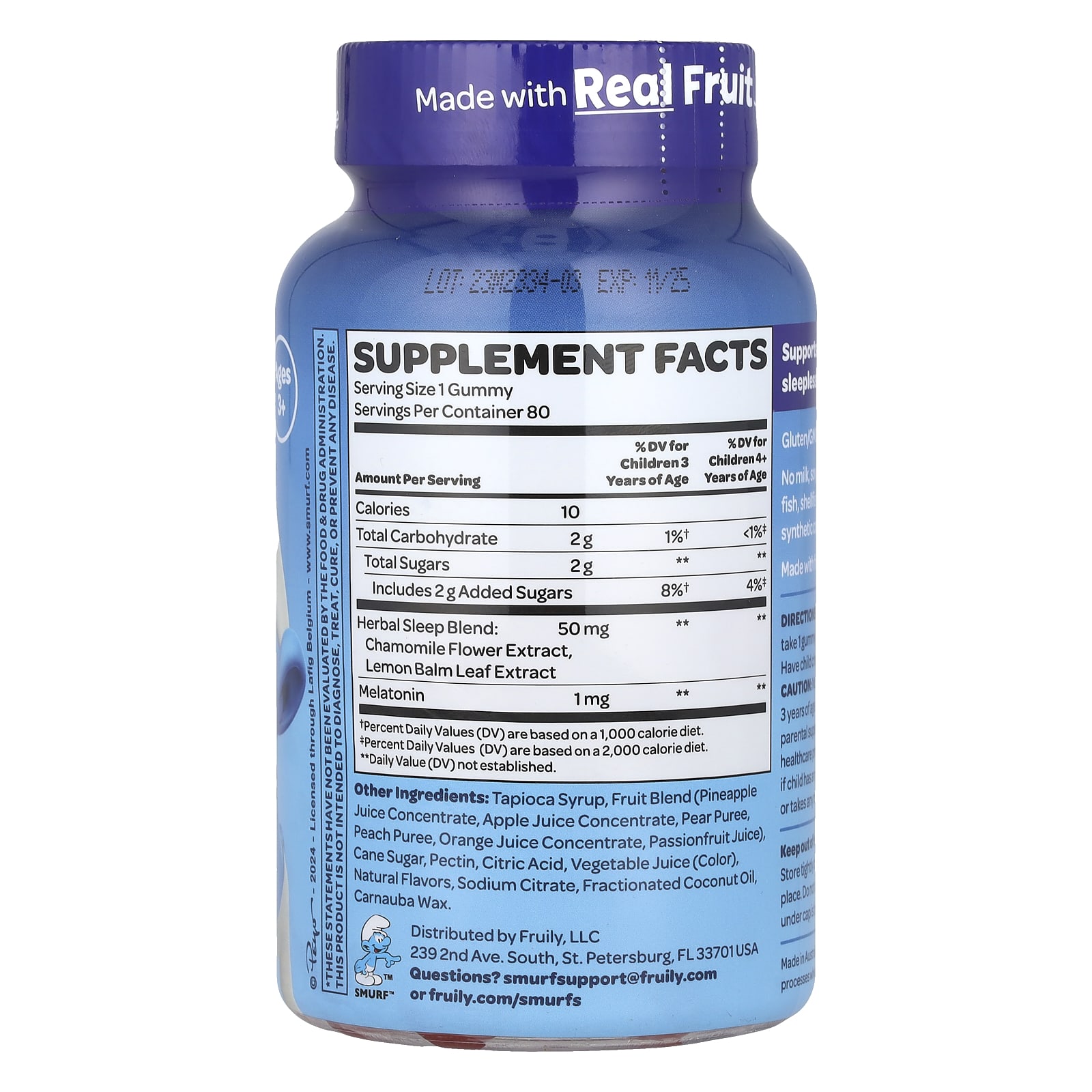 Тапиоковый сироп, смесь фруктов (концентрат ананасового сока, концентрат яблочного сока, грушевое пюре, персиковое пюре, концентрат апельсинового сока, сок маракуйи), тростниковый сахар, пектин, лимонная кислота, овощной сок (краситель), натуральные ароматизаторы, цитрат натрия, фракционированное кокосовое масло, карнаубский воск.