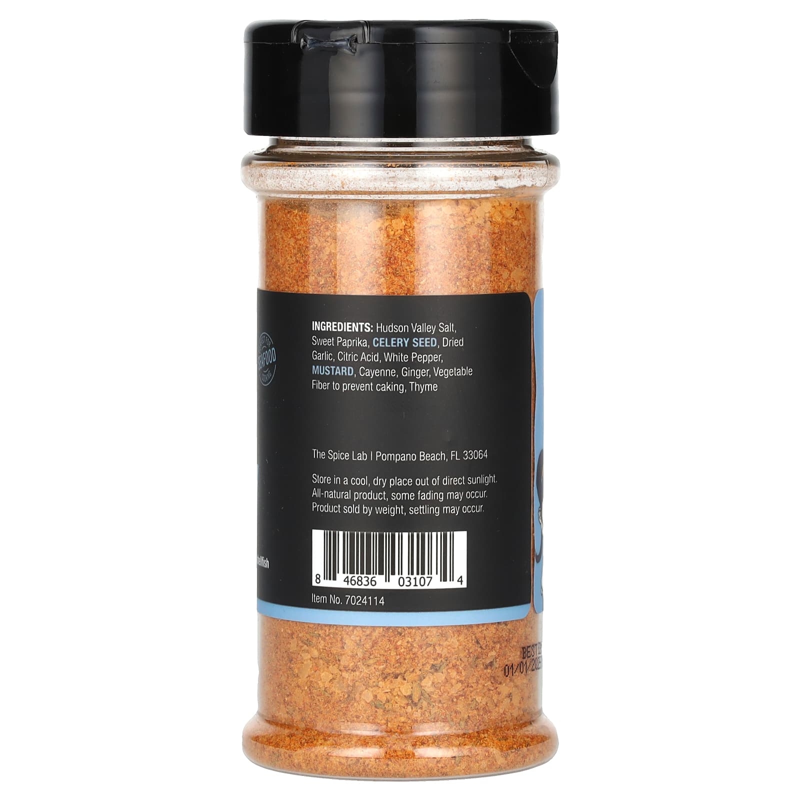 Соль из долины Гудзона, сладкая паприка, семена сельдерея, сушеный чеснок, лимонная кислота, белый перец, горчица, кайенский перец, имбирь, растительная клетчатка для предотвращения слеживания, чабрец.
