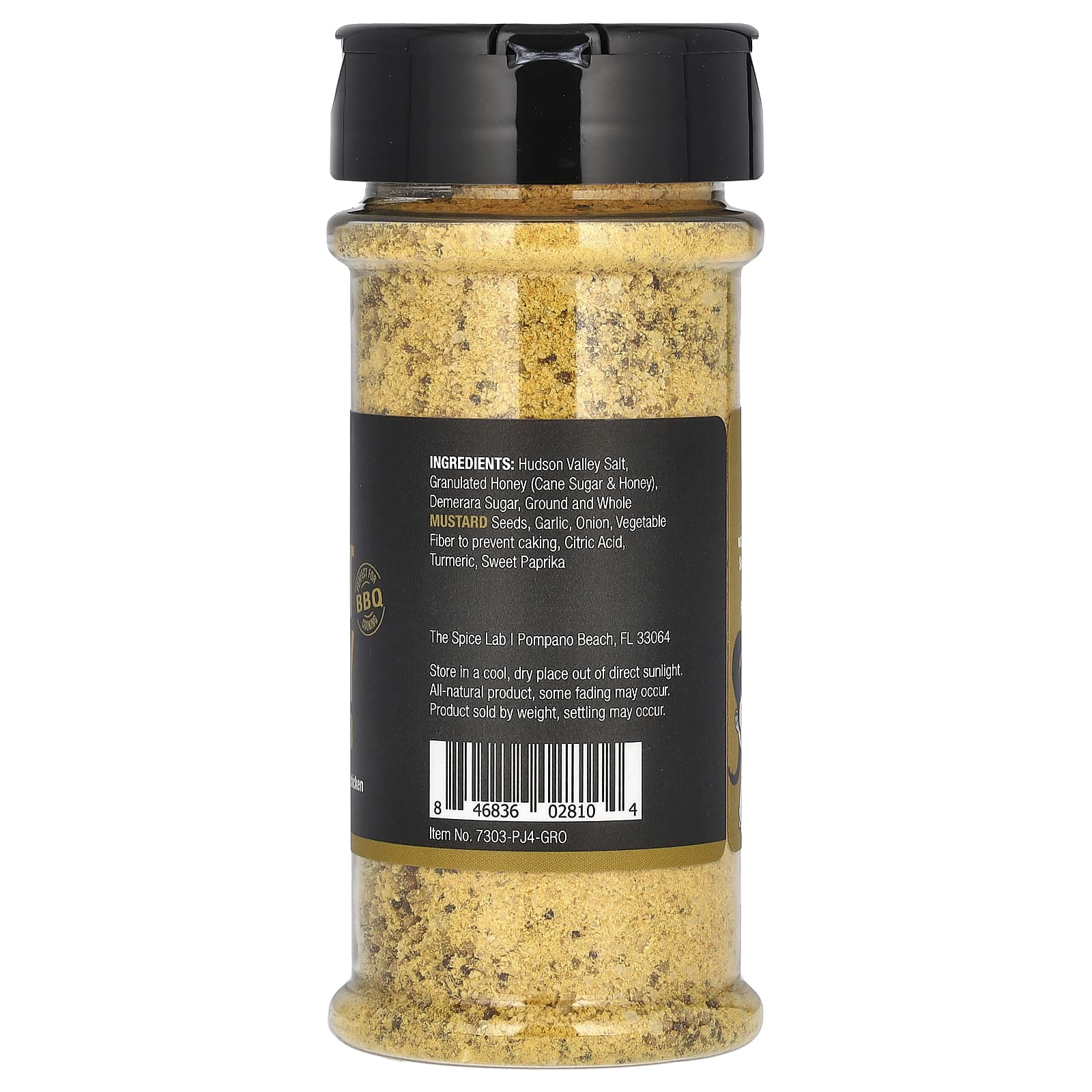 Соль Гудзонской долины, гранулированный мед (тростниковый сахар и мед), коричневый сахар, молотые и цельные семена горчицы, чеснок, лук, растительная клетчатка для предотвращения слеживания, лимонная кислота, куркума, сладкой паприки.