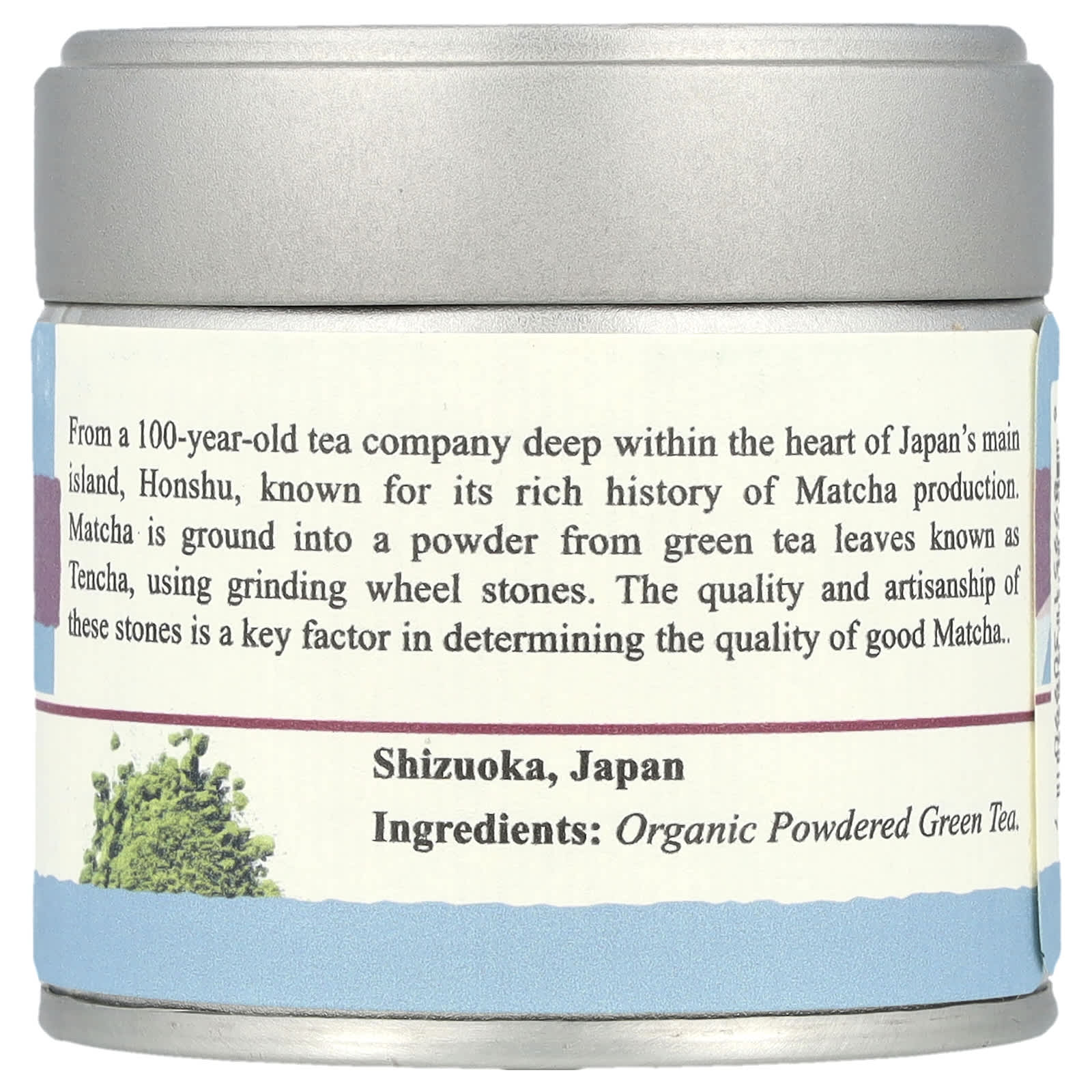 От 100-летней чайной компании на территории главного острова Японии, Хонсю, известной своей богатой историей производства матча. Матча измельчают в порошок из листьев зеленого чая, известного как тенча, с помощью камней шлифовального круга. Качество и мастерство изготовления этих камней - ключевой фактор, определяющий качество хорошего матча. Сидзуока, япония