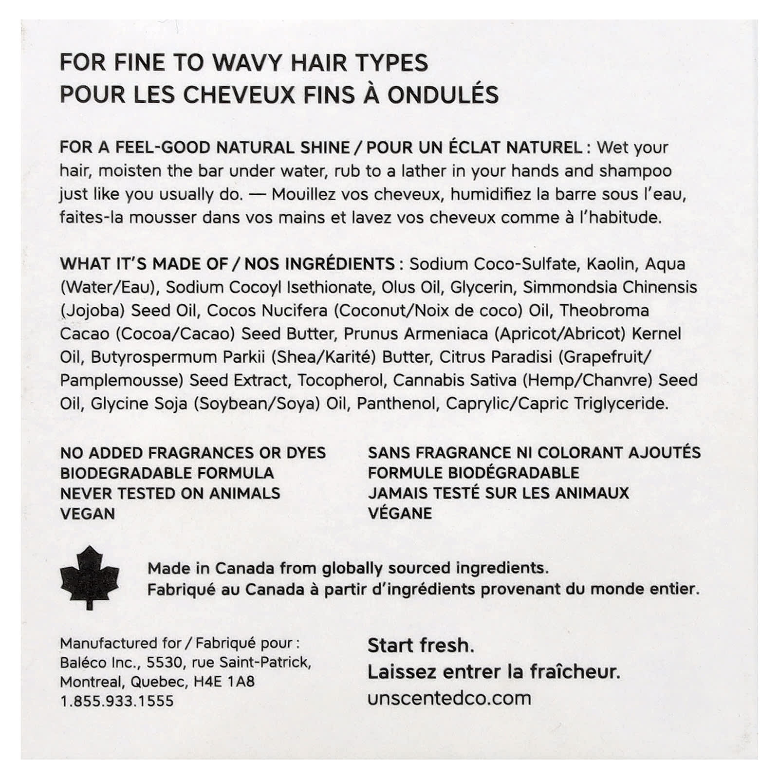 Кокосульфат натрия, каолин, вода, натрия кокоилизотионат, масло оливы, глицерин, Масло семян Simmondsia chinensis (Jojoba), кокосовое масло (Cocos nucifera), масло зерен какао (Theobroma cacao), масло из косточек абрикоса/абрикоса (Prunus armeniaca), Масло Butyrospermum parkii (Ши), экстракт семян грейпфрута (Citrus paradisi), Токоферол, конопляное масло (Cannabis sativa), Глицин соевое (соевое) масло, пантенол, каприловый/каприновый триглицерид.