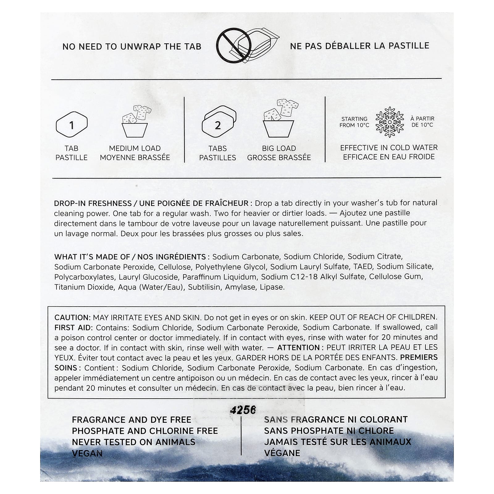 Из чего он сделан: Карбонат натрия, хлорид натрия, цитрат натрия, перекись карбоната натрия, целлюлоза, полиэтиленгликоль, лаурилсульфата натрия, ТАЭД, силикат натрия, поликарбоксилаты, лаурил глюкозид, вазелиновое масло, c12-18 алкил сульфат натрия, целлюлозная камедь, диоксид титана, вода, субтилизин, амилаза, липаза.