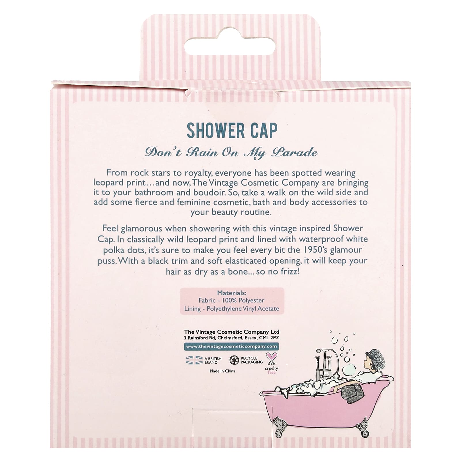 Чувствуйте себя гламурно с этой шапочкой для душа в винтажном стиле. Эта модель с классическим леопардовым принтом и водостойким белым горошком заставит вас почувствовать гламур 1950-х годов. Благодаря черной отделке и мягкому эластичному воротнику ваши волосы останутся сухими, как кость ... так что пушение не будет!