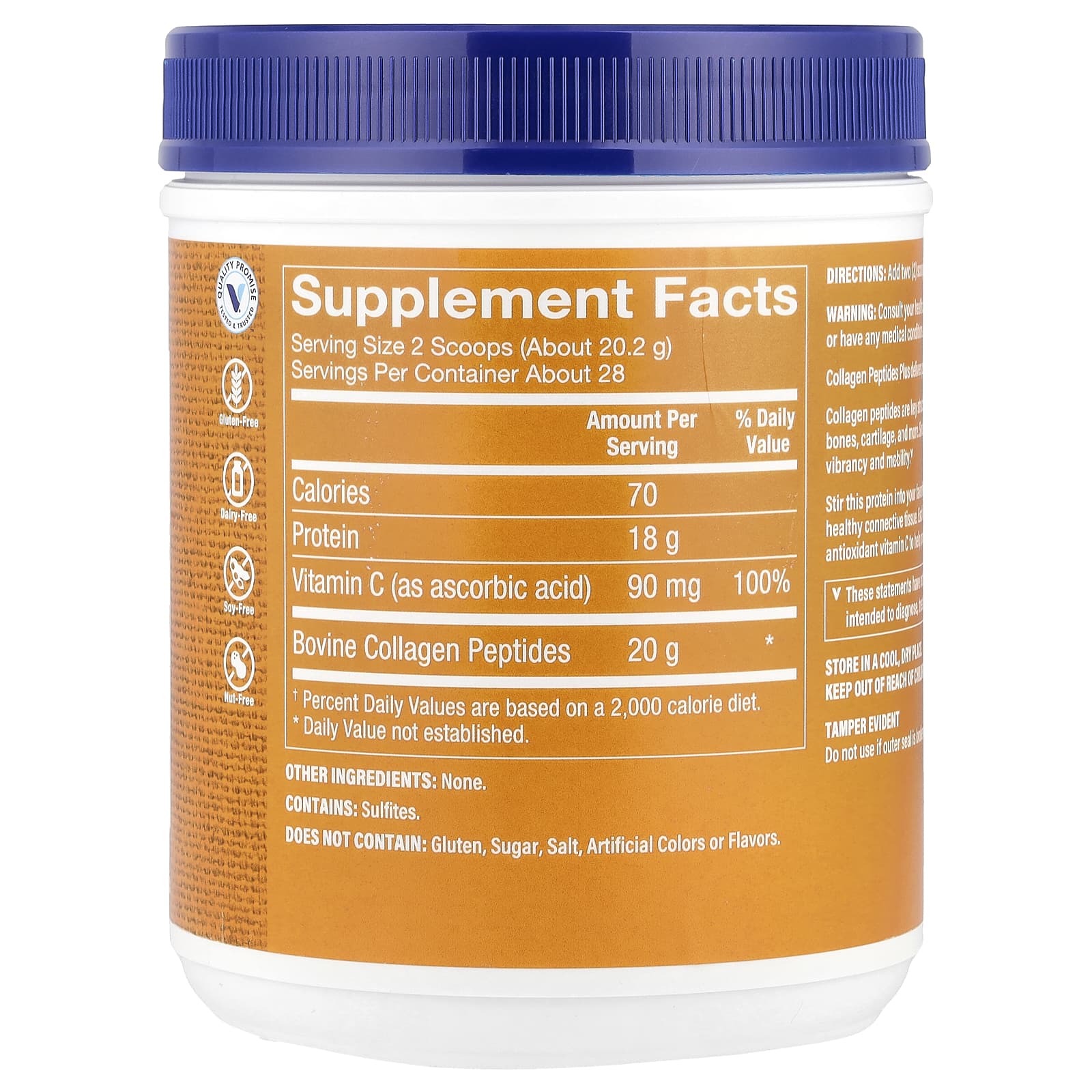 Collagen Peptides Plus содержит чистый, гидролизованный бычий коллаген травяного откорма для поддержания здоровья как внутри, так и снаружи.