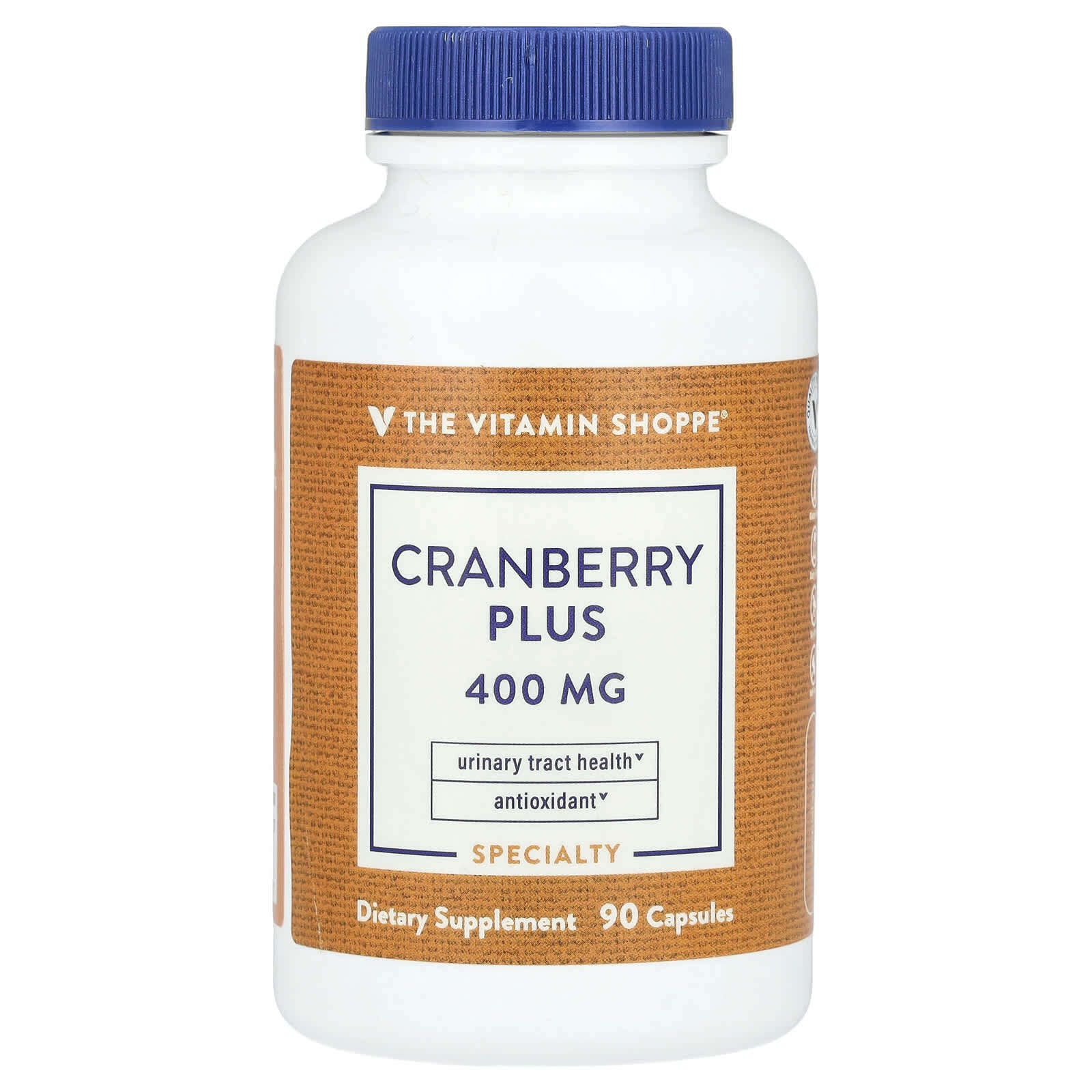 Капсулы Cranberry Plus от Vitamin Shoppe® специально созданы для поддержания здоровья мочевыводящих путей и содержат 400 мг концентрата клюквенного сока и 30 мг витамина C.