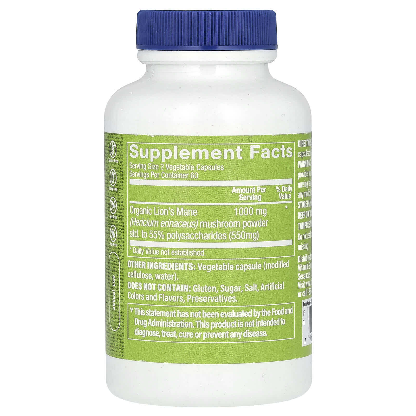 Капсулы с ежовиком гребенчатым от бренда Vitamin Shoppe® содержат 1000 мг порошка органического Hericium erinaceaus для поддержки работы мозга.