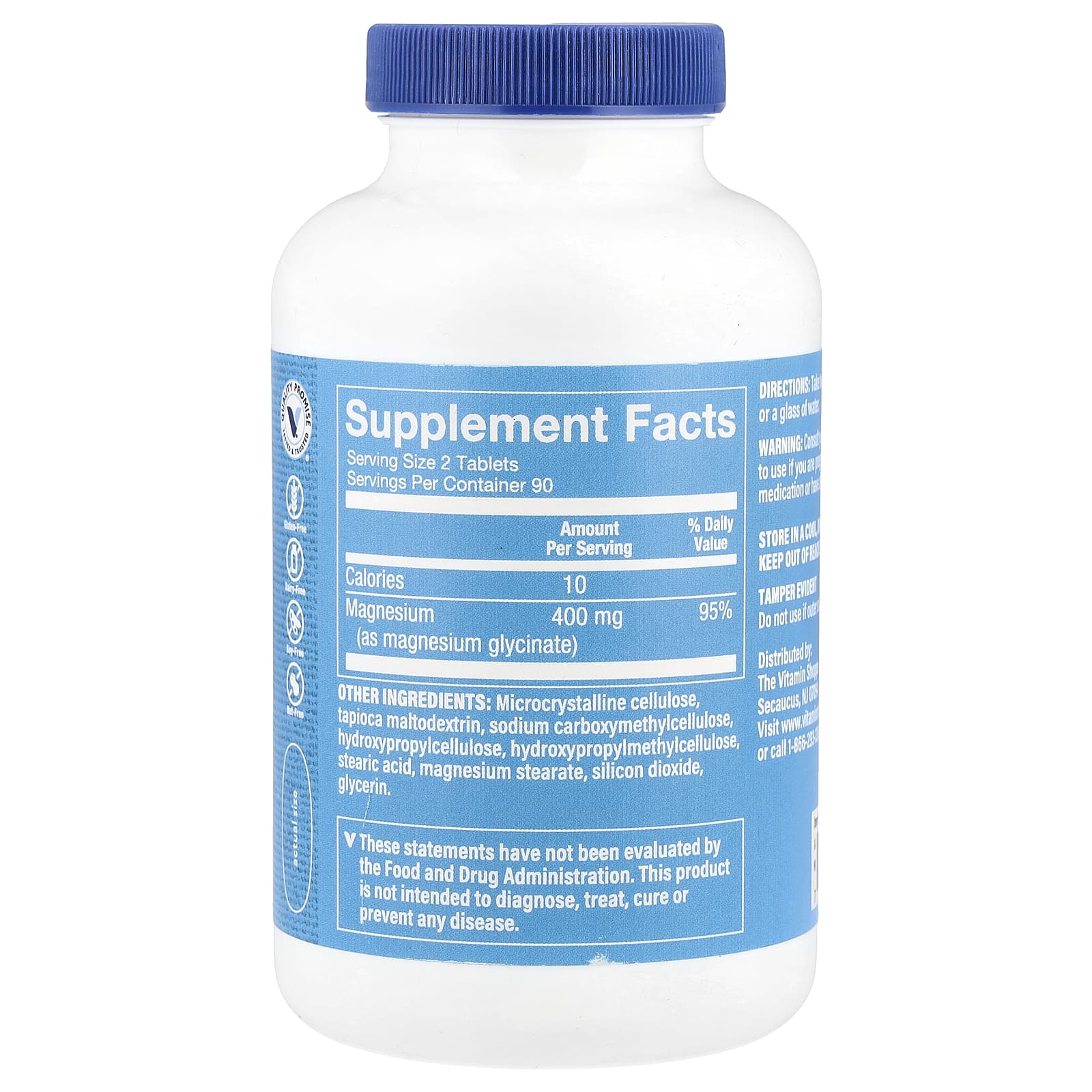 The Vitamin Shoppe, Глицинат магния, 400 мг, 180 таблеток (200 мг в каждой таблетке)
