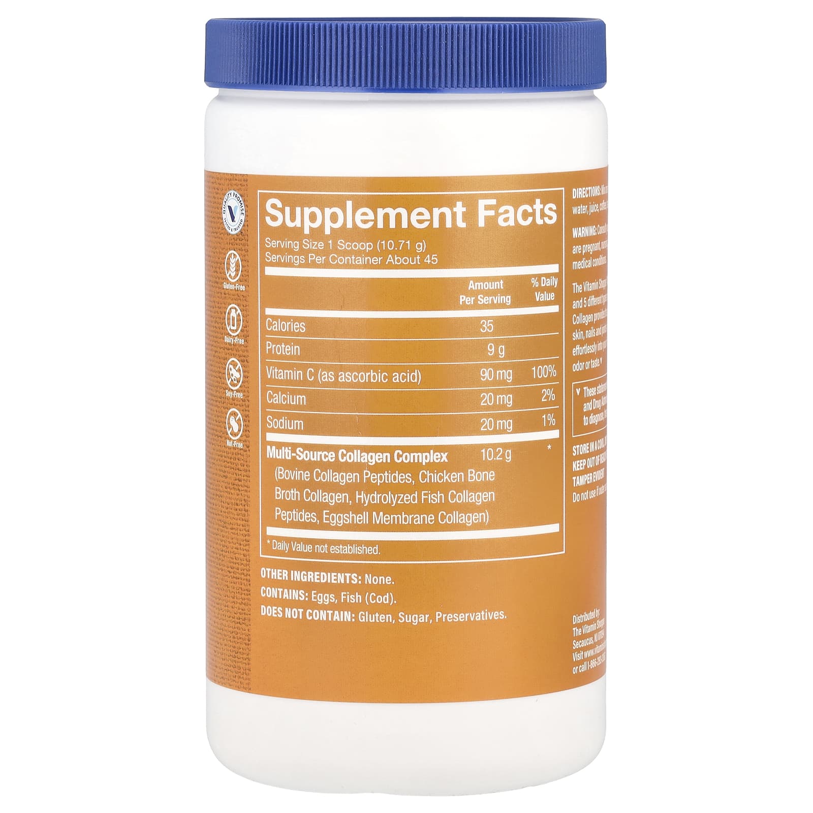 Multi-Source Collagen Vitamin Shoppe® включает витамин C и 5 различных типов пищевого коллагена. Коллаген из нескольких источников обеспечивает строительные блоки для поддержания здоровья волос, кожи, ногтей и суставов всего в одной мерной ложке. Эта смесь легко смешивается с вашими любимыми напитками по рецептам, не имеет запаха и вкуса.
