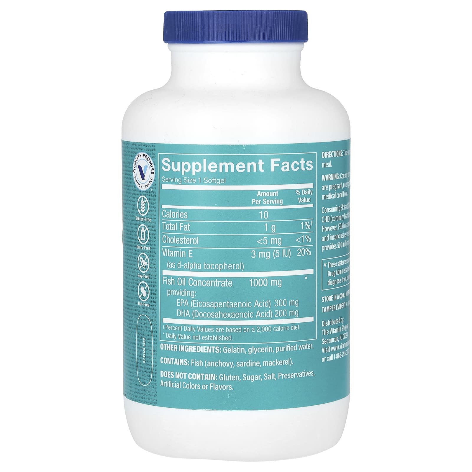 На протяжении всей жизни вам потребуется поддержка для здоровья сердца, мозга и глаз, чтобы обеспечить конечную цель, которую вы определяете. Капсулы с рыбьим жиром омега-3 от бренда Vitamin Shoppe®, содержащие 300 мг ЭПК и 200 мг ДГК в одной порции, разработаны для поддержки развития мозга, а также здоровья сердечно-сосудистой системы и глаз.