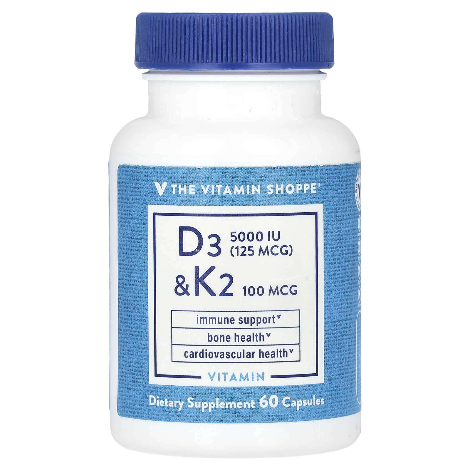 В мире, где превыше всего удобство, растительные капсулы с витаминами D3 и K2 от бренда Vitamin Shoppe® знают, как справиться со своей задачей. Эти капсулы для приема один раз в день, содержащие 5000 МЕ витамина D3 и 100 мкг витамина K2 в 1 порции, являются универсальным решением для поддержки здоровья костей, иммунной и сердечно-сосудистой систем.
