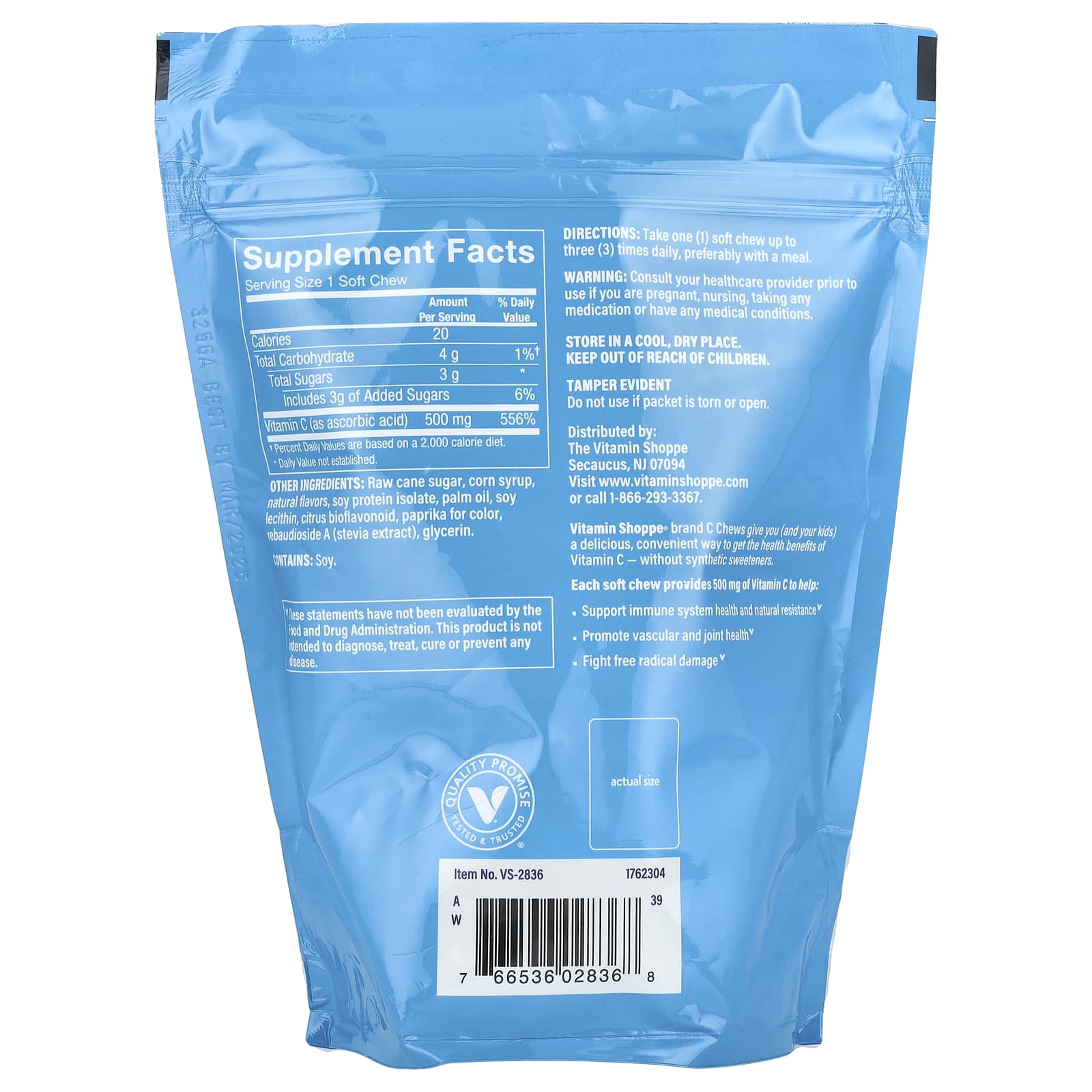 Жевательные таблетки Vitamin Shoppe® от бренда C дают вам (и вашим детям) вкусный и удобный способ получить пользу для здоровья от витамина C - без синтетических подсластителей.