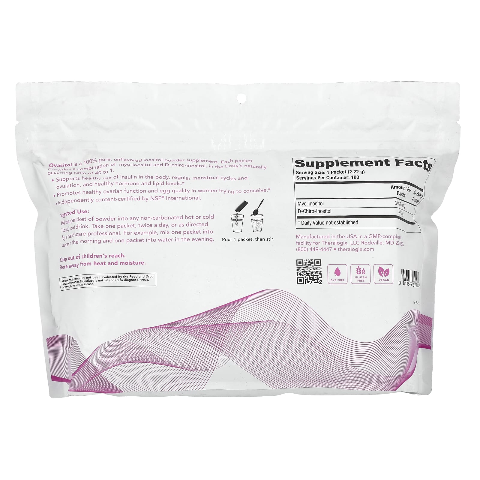 Оваситол - это 100% чистая добавка инозитола без добавок. Каждый пакетик содержит комбинацию мио-инозитола и D-хиро-инозитола в естественном соотношении 40: 1.