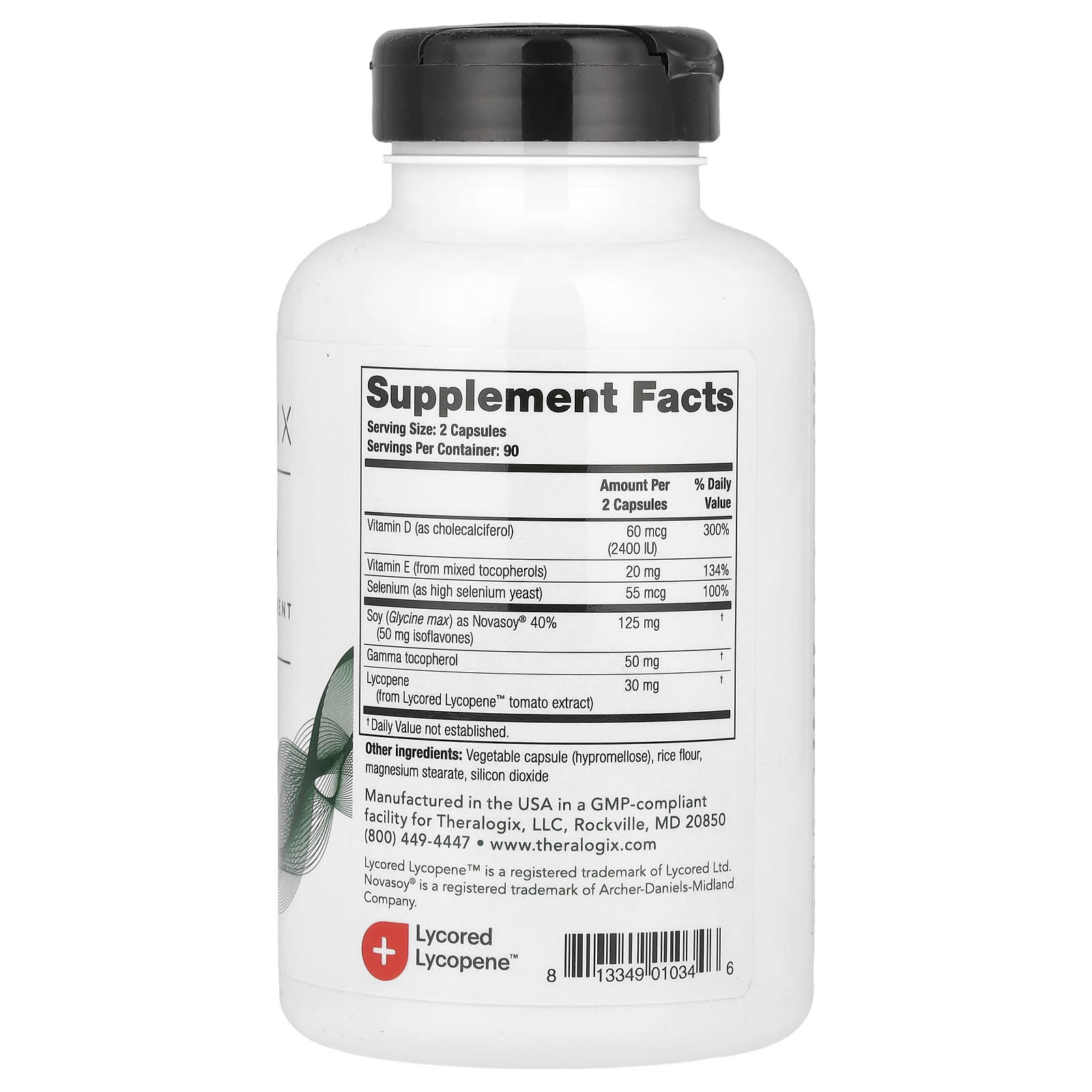 - Две ежедневные капсулы содержат ликопин из экстракта томатов, изофлавоны сои из экстракта сои, оптимальную дозу витамина D3, а также антиоксиданты селен и витамин E.