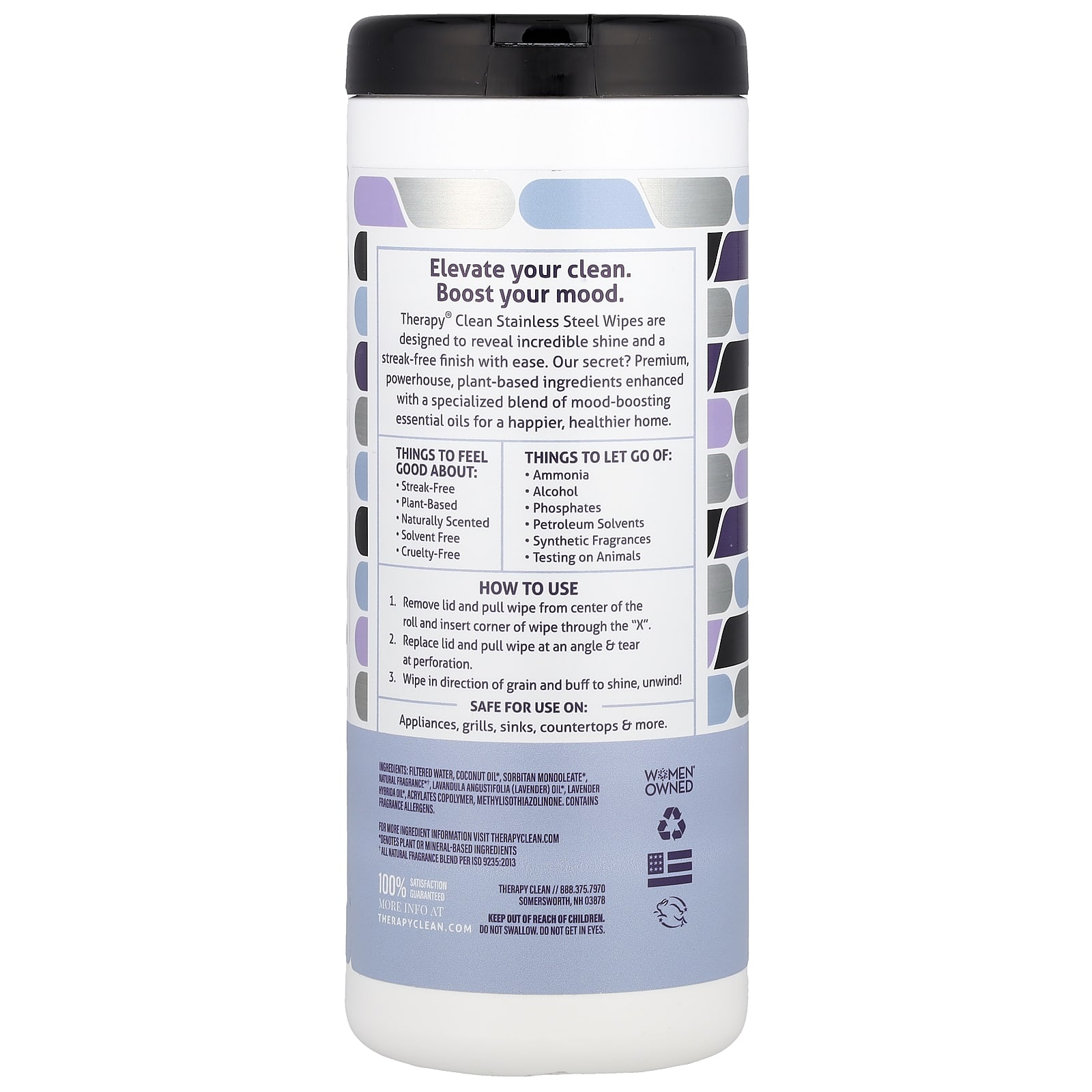 Поднимите чистоту. Поднимите себе настроение. Салфетки из нержавеющей стали Therapy® Clean обеспечивают невероятный блеск и гладкость кожи. Наш секрет? Мощные растительные ингредиенты премиального качества, усиленные специальной смесью эфирных масел, поднимающих настроение, делают дом более счастливым и здоровым.
