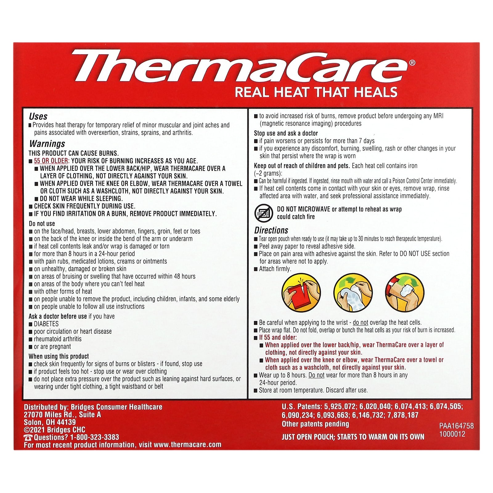 - When applied over the knee or elbow, wear thermacare over a towel or cloth such as a washcloth, not directly against your skin.