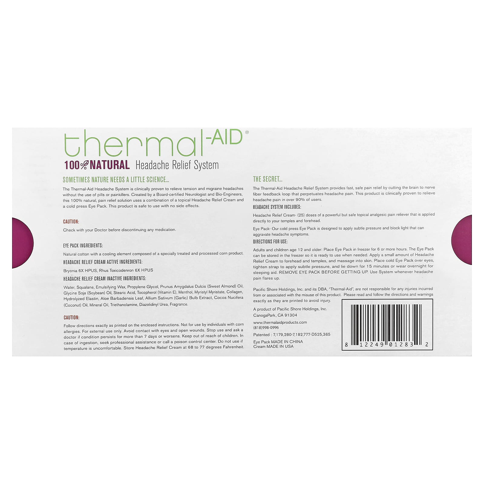 Термическая система облегчения головной боли обеспечивает быстрое и безопасное облегчение боли, разрезая петлю отзывной связи от мозга к нервным волокнам, которая усиливает головную боль. Клинически доказано, что этот продукт облегчает головную боль у более чем 90% пользователей.