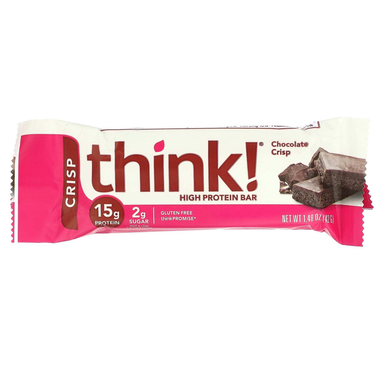 Ищете поддержку для решения сегодняшних задач? Зарядитесь энергией с хрустящим батончиком с высоким содержанием протеина Think! ®. В каждом батончике восхитительный вкус сочетается с протеиновым пуншем. Батончик Chocolate Crisp сочетает в себе мягкий слой, похожий на торт, на шоколадной хрустящей сердцевине, который может напомнить вам о вашем любимом лакомстве из детства. Так что захватите с собой батончик think!, если хотите перекусить по дороге или вам необходим заряд бодрости перед тренировкой.