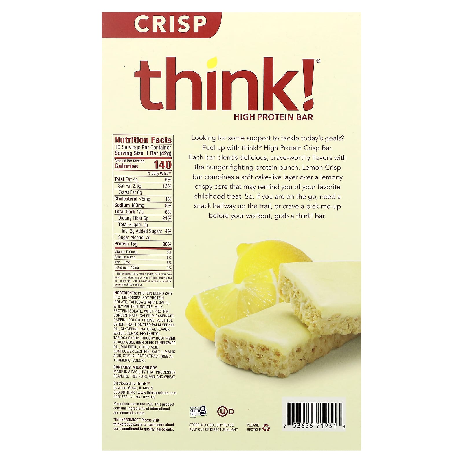 Ищете поддержку для решения сегодняшних задач? Зарядитесь энергией с хрустящим батончиком с высоким содержанием протеина Think! ®. В каждом батончике восхитительный вкус сочетается с протеиновым пуншем. Батончик «Лимонная хрустящая корочка» сочетает в себе мягкий слой, похожий на торт, и лимонную хрустящую сердцевину, которая может напомнить вам о вашем любимом лакомстве из детства. Так что захватите с собой батончик think!, если хотите перекусить по дороге или вам необходим заряд бодрости перед тренировкой.