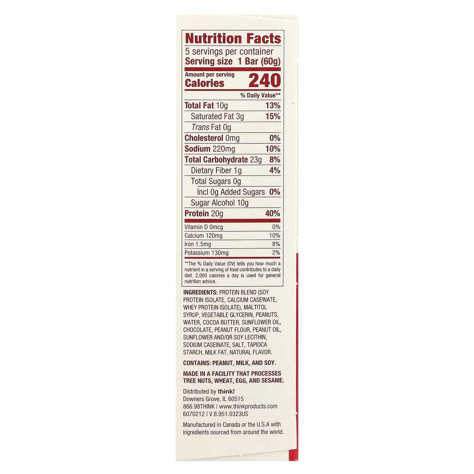 Think !, Высокопротеиновые батончики, кусочки арахисовой пасты, 5 батончиков, 60 г (2,1 унции) каждый