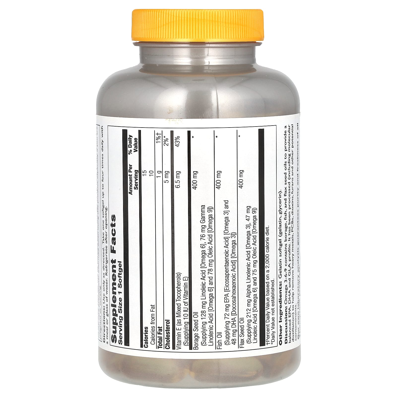 Описание: Омега 3-6-9 содержит масло огуречника, масло из семян льна и рыбий жир для сбалансированного соотношения ЭПК, ДГК и ГЛК. Продукт прошел обработку (в том числе молекулярную дистилляцию) для устранения тяжелых металлов, полихлорированных дифенилов, диоксинов, фуранов и других потенциальных загрязнителей.