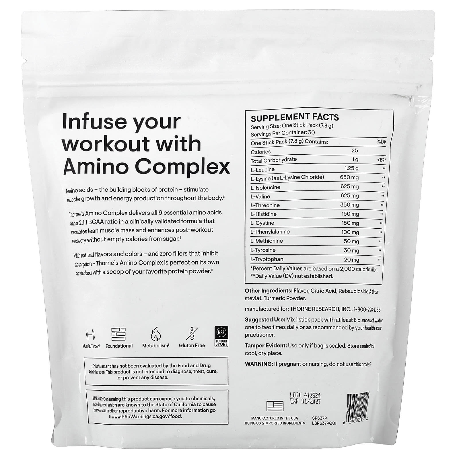 Аминокислотный комплекс Thorne содержит натуральные ароматизаторы и красители и не содержит наполнителей, препятствующих усвоению. Он идеально подходит самостоятельно или в сочетании с мерной ложкой вашего любимого протеинового порошка.