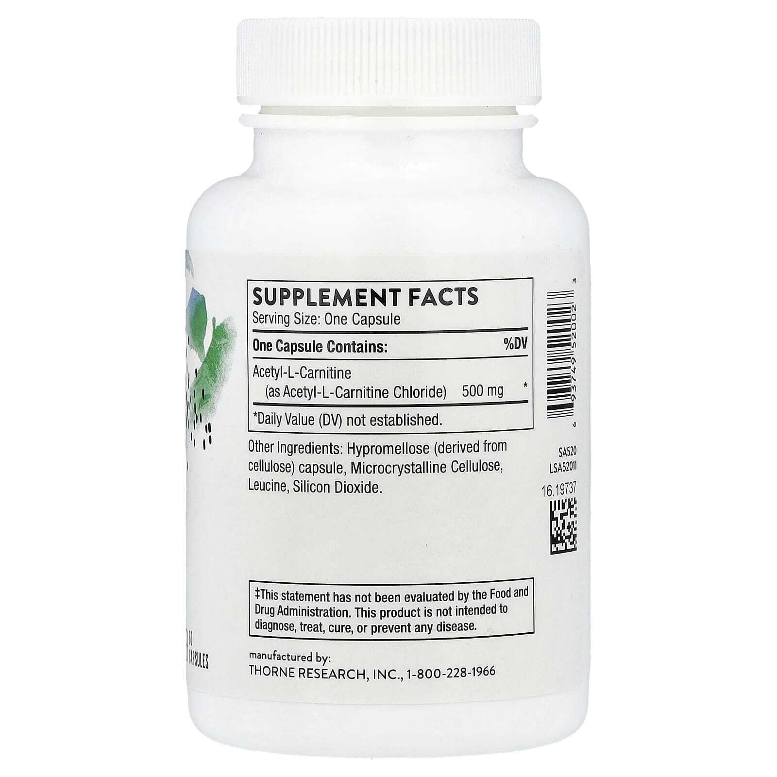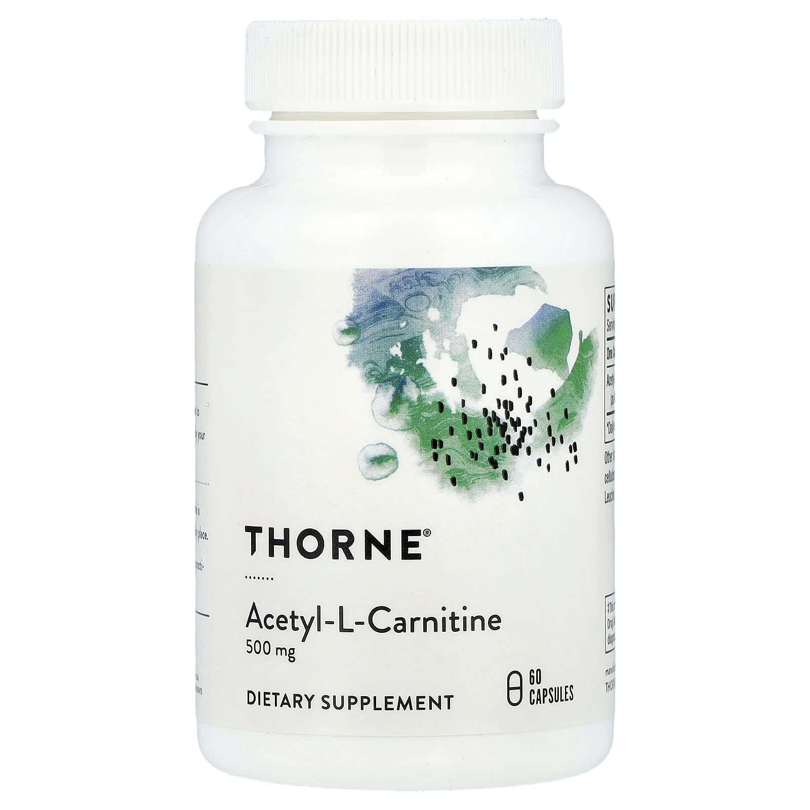 Ацетил-L-карнитин от Thorne поддерживает здоровье нервов в верхних и нижних конечностях и усиливает выработку нейромедиатора ацетилхолина, который поддерживает работу мозга. Ацетил-L-карнитин также помогает минимизировать дискомфорт из-за нарушений в работе нервов, например, у лиц с онкологическими заболеваниями, проходящих химиотерапию, или у людей с высоким уровнем сахара в крови. Ацетил-L-карнитин лучше всасывается и быстрее проникает через гематоэнцефалический барьер, чем L-карнитин. Исследования продемонстрировали его эффективность в поддержании когнитивного здоровья и хорошего настроения у пожилых людей, возможно, за счёт частичного подавления активности гипоталамо-гипофизарно-надпочечниковой системы и снижения хронически повышенного уровня кортизола, который увеличивается во время стресса. Помимо того, что ацетил-L-карнитин поддерживает здоровье мозга и нервной системы, он также способствует здоровому количеству и моторике сперматозоидов.