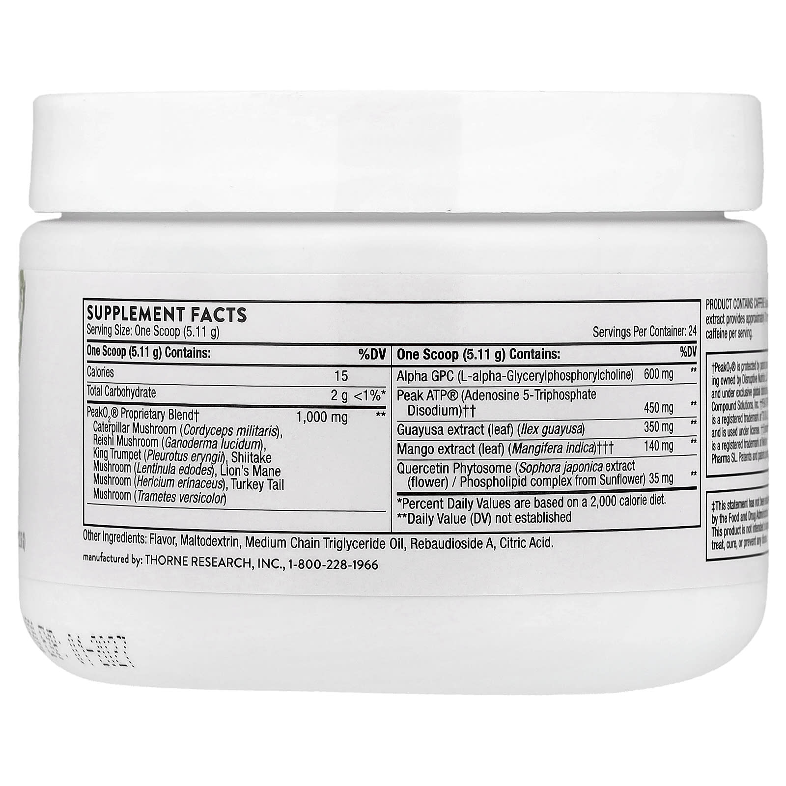 | * Суточная норма не определена. ** Процент от суточной нормы при условии потребления 2000 калорий в день. † Peak02® защищен патентами, находящимися на рассмотрении, принадлежащими Disruptive Nutrition, LLC, и находится под эксклюзивным глобальным распределением компании Compound Solutions, Inc. †† PEAK ATP® является зарегистрированной торговой маркой TSI USA, LLC и используется по лицензии. ††† Zynamite® является зарегистрированной торговой маркой Nektium Pharma SL. Подана заявка на патенты и патенты. | ||