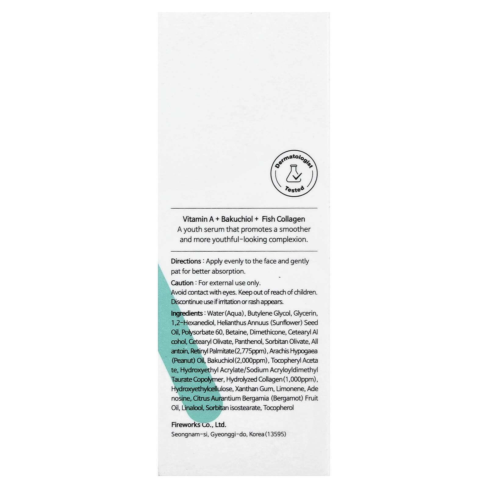 Вода, бутиленгликоль, глицерин, 1,2-гександиол, Масло семян подсолнечника, полисорбат 60, Бетаин, диметикон, Цетеариловый спирт, цетеарилоливат, пантенол, сорбитан оливат, Аллантоин, ретинилпальмитат (2775 част./млн), арахисовое масло (Arachis hypogaea), бакучиол (2000 част./млн), токоферилацетат, гидроксиэтил акрилат/натрия акрилоилдиметилтаурата сополимер, гидролизованный коллаген (1000 част./млн), гидроксиэтилцеллюлоза, Ксантановая камедь, лимонен, аденозин, масло бергамота (Citrus aurantium bergamia), линалоол, сорбитан изостеарат, токоферол.