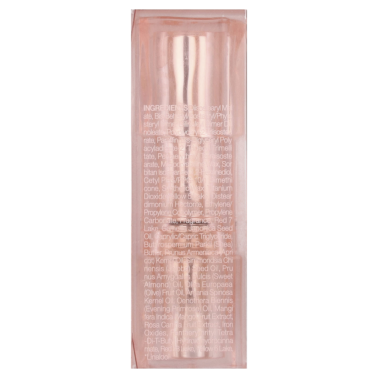 дистеарил малат, бис-бегенил/изостеарил/фитостерил димер дилинолеи димер дилинолеат, полиглицерил-2 триизостеарат, парафин бис-диглицерил полиациладикат 2 тидецил тримеллитат, пентаэритритил тетраизостеарат, микрокристаллический воск, сорбитан изостеарат 1,2-гександиол, цетил ПЭГ/ППГ-10/1 диметикон, синтетический воск, диоксид титана, краситель желтый 5 лак, дистеардимония гекторит, сополимер этилена/пропилена, пропиленкарбонат, отдушка, краситель красный 7 лак, масло из семян камелии японской (Camellia japonica), каприловый/каприновый триглицерид, масло ши (Butyrospermum parkii), масло из косточек абрикоса (Prunus armeniaca), масло из семян жожоба (Simmondsia chinensis), масло сладкого миндаля (Prunus amygdalus dulcis), оливковое масло (Olea europaea), аргановое масло (Argania spinosa), масло примулы вечерней (Oenothera biennis), экстракт плодов манго (Mangifera indica), экстракт плодов шиповника (Rosa canina), оксиды железа, пентаэритритил тетра ди-трет-бутил гидроксигидроциннамат, краситель красный 28 лак, краситель желтый 6 лак, линалоола.