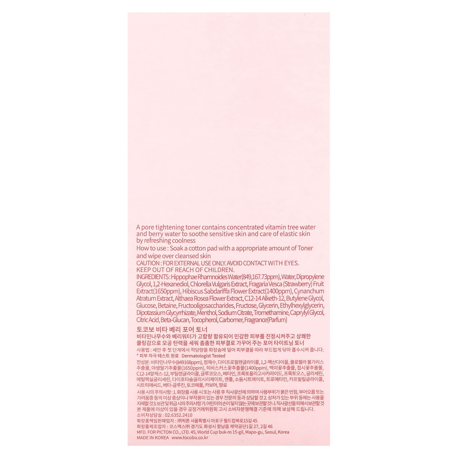 Тоник для сужения пор содержит концентрированную древесную и ягодную воду с витаминами, которые успокаивают чувствительную кожу и заботятся о эластичной коже, освежая прохладой.