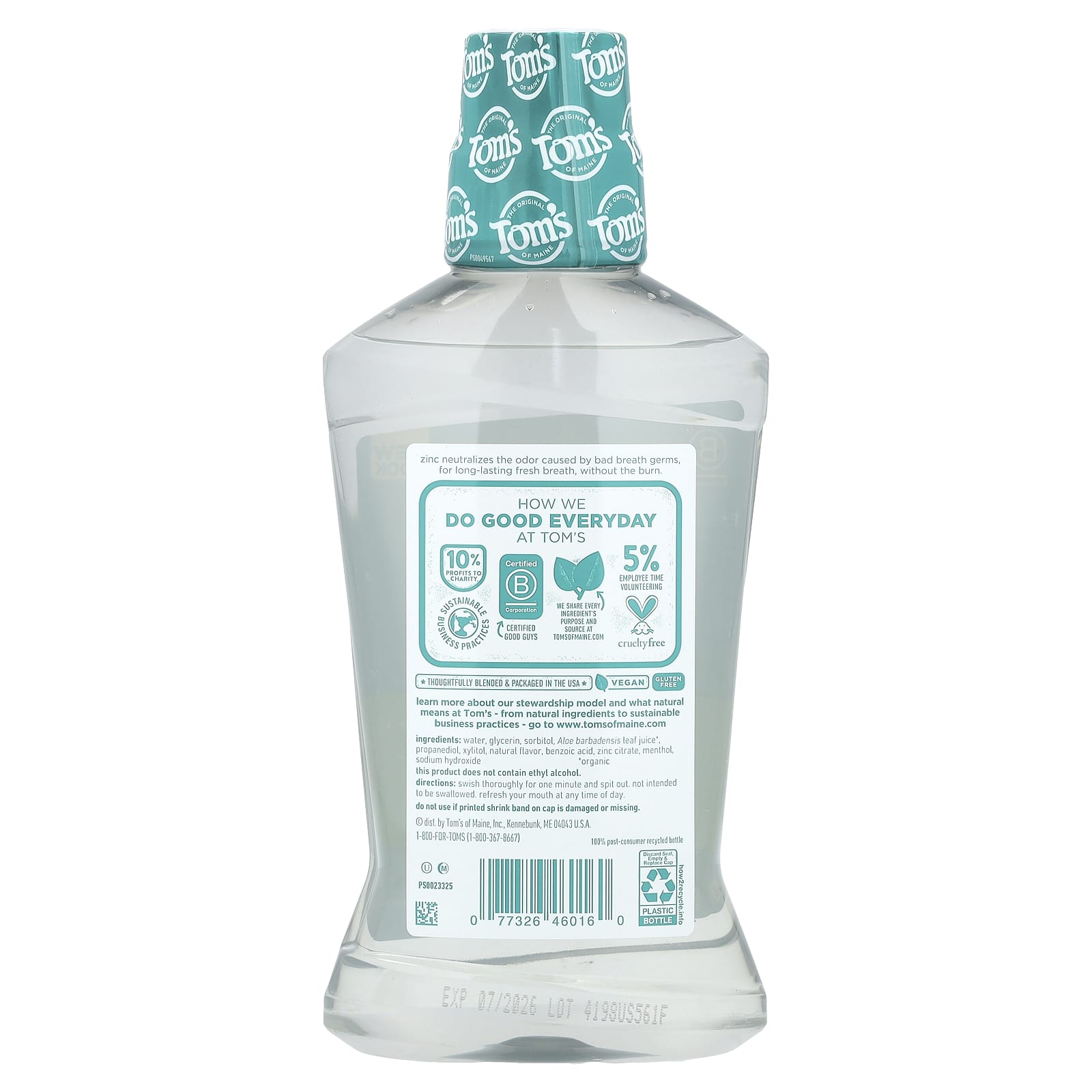 Вода, глицерин, сорбитол, сок листьев алоэ вера (Aloe barbadensis)*, пропандиол, ксилитол, натуральный ароматизатор, бензойная кислота, цитрат цинка, ментол, гидроксид натрия.